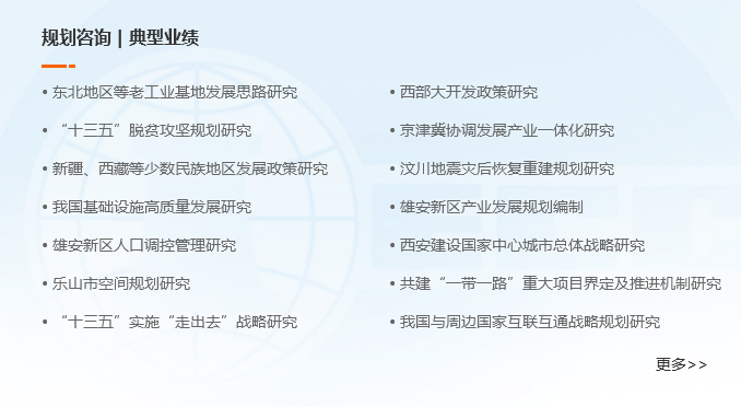 中咨公司發(fā)揮學(xué)科交叉、領(lǐng)域融合的綜合優(yōu)勢(shì),瞄準(zhǔn)國(guó)家宏觀(guān)戰(zhàn)略、區(qū)域發(fā)展戰(zhàn)略和產(chǎn)業(yè)發(fā)展戰(zhàn)略,站在全局和長(zhǎng)遠(yuǎn)視角,持續(xù)提升規(guī)劃咨詢(xún)成果的前瞻性、導(dǎo)向性和實(shí)操性,成為行業(yè)領(lǐng)先者。
