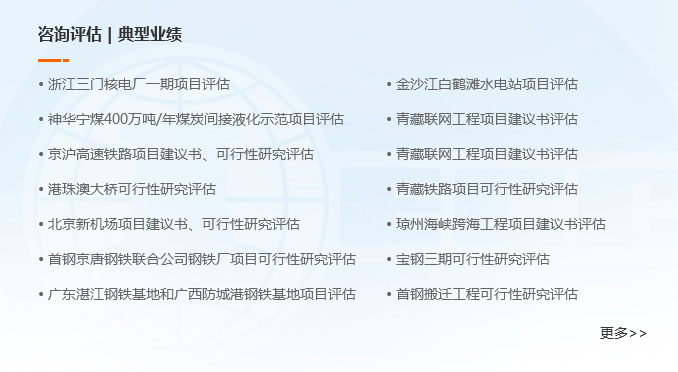 咨詢(xún)?cè)u(píng)估業(yè)務(wù)是中咨公司的特色業(yè)務(wù)和行業(yè)領(lǐng)先優(yōu)勢(shì)的集中體現(xiàn)。中咨公司成立40 年來(lái)在重大工程、基礎(chǔ)工業(yè)、未來(lái)產(chǎn)業(yè)、鄉(xiāng)村振興、社會(huì)事業(yè)、區(qū)域發(fā)展、生態(tài)文明、國(guó)防軍工、一帶一路等方面作出了積極貢獻(xiàn)。