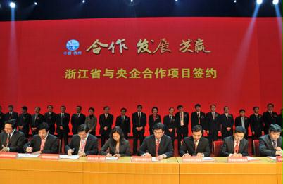 國務(wù)院國資委與浙江省簽訂備忘錄后,浙江省與部分中央企業(yè)簽署了戰(zhàn)略合作框架協(xié)議,部分中央企業(yè)與浙江相關(guān)單位簽署了合作協(xié)議。