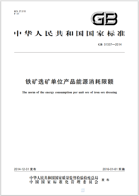 鐵礦選礦單位產(chǎn)品能源消耗限額