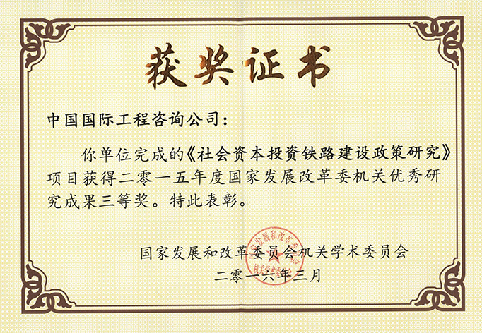 | 2015年度國家發(fā)展改革委機(jī)關(guān)優(yōu)秀研究成果三等獎(jiǎng) | |||||
