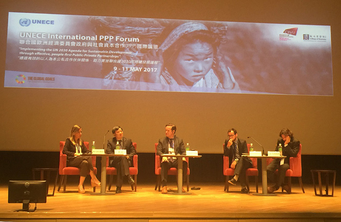 | 5月9-11日,聯(lián)合國歐洲經(jīng)濟委員會(簡稱聯(lián)合國歐經(jīng)會,UNECE)在香港城市大學(xué)成功召開第二屆PPP國際論壇,論壇主題為“通過以人為本及有效的PPP模式實踐聯(lián)合國2030年可持續(xù)發(fā)展議程”,內(nèi)容包括“一帶一路”倡議與以人為本PPP、聯(lián)合國可持續(xù)發(fā)展目標(SDGs)框架下的PPP標準與指導(dǎo)原則、各國PPP典型案例分享、八個平行分論壇、香港PPP經(jīng)驗及可持續(xù)和可恢復(fù)的城市等。論壇期間,中國國際工程咨詢公司(簡稱中咨公司)研究中心主任李開孟博士主持組織召開了城市軌道交通PPP模式平行論壇暨聯(lián)合國城市軌道交通PPP標準制定第二次專家組工作會議,并參與“尋找一帶一路倡議下的最佳PPP項目”及“可持續(xù)和可恢復(fù)的城市”兩個專題論壇的討論。來自歐洲、北美洲、南美洲、拉丁美洲、非洲、澳洲、亞洲的50多個國家和地區(qū)的政府部門、國際組織、工商企業(yè)、學(xué)術(shù)機構(gòu)等260余名注冊代表參加了本次論壇;香港鳳凰網(wǎng)(www.ifeng.com)進行了視頻直播,超過7萬人次在線收看了論壇直播。 聯(lián)合國歐經(jīng)會發(fā)起召開的PPP國際論壇,是聯(lián)合國系統(tǒng)針對PPP標準制定及研究交流的高層次專業(yè)論壇,受到世界各國政府官員、國際組織、專家學(xué)者及業(yè)界精英的高度關(guān)注。2016年3月30日至4月1日,聯(lián)合國首屆PPP論壇在瑞士日內(nèi)瓦萬國宮聯(lián)合國歐洲總部召開,中咨公司研究中心主任李開孟博士和教授級高工徐成彬向與會代表介紹了中國城市軌道交通PPP發(fā)展現(xiàn)狀和規(guī)劃以及PPP成功實踐案例,并申請制定城市軌道交通PPP國際標準。香港城市大學(xué)商學(xué)院提出并成功申辦了第二屆PPP論壇。 在本次PPP國際論壇開幕式上,聯(lián)合國歐經(jīng)會國際合作與綜合司副司長兼PPP中心主任杰夫瑞•漢密爾頓(Geoffrey Hamilton)、香港城市大學(xué)校長郭位(Way Kuo)分別代表論壇主辦方致開幕詞。出席論壇的嘉賓還有:中國中央政府駐香港聯(lián)絡(luò)辦副主任譚鐵牛、第十二屆全國政協(xié)常委兼世界貿(mào)易中心協(xié)會終身榮譽主席團成員伍淑清(Annie Wu)、香港特別行政區(qū)“一帶一路”專員蔡榮璧(Yvonne Choi)、亞洲基礎(chǔ)設(shè)施投資銀行副行長丹尼·亞歷山大(Danny Alexander)、世界銀行基礎(chǔ)設(shè)施融資高級專家馬克·吉布樂特(Mark Giblett)、聯(lián)合國歐經(jīng)委PPP專家委員會主席亞特·史密斯(Art Smith)、聯(lián)合國歐經(jīng)委PPP商業(yè)顧問委員會主席詹姆斯·斯圖爾特(James Stewart)等。    圖1 聯(lián)合國歐經(jīng)會國際合作與綜合司副司長兼PPP中心主任杰夫瑞•漢密爾頓(Geoffrey Hamilton)致開幕詞 在清華大學(xué)PPP研究中心共同主任王天義主持的“尋找‘一帶一路’倡議中的最佳PPP項目”(Seeking the Best PPP Projects for the OBOR Initiative)為主題的平行論壇中,中咨公司研究中心主任李開孟博士應(yīng)邀出席該主題的辯論交流。李開孟博士認為,國際社會討論“一帶一路”倡議下的最佳PPP項目,需要厘清三個核心問題,即我們需要什么樣的PPP項目、為什么需要這些項目和如何尋找這些PPP項目,并闡述了關(guān)于三代PPP劃分的思想。李開孟博士指出,英國PFI代表現(xiàn)代PPP核心理念的形成,并產(chǎn)生第一代PPP;以中國為代表的發(fā)展中國家,吸收法國特許經(jīng)營理念和PFI理念,進行吸收創(chuàng)新,正在創(chuàng)造第二代PPP,并作為經(jīng)濟發(fā)展的工具;聯(lián)合國倡導(dǎo)的以人為本PPP屬于第三代PPP,主要特征是追求人的發(fā)展以及資源環(huán)境社會的和諧和可持續(xù)性。歐洲創(chuàng)造了第一代PPP的概念和核心理念,中國目前正在主導(dǎo)實踐第二代PPP,聯(lián)合國正引導(dǎo)向第三代PPP過渡,而且中國是積極的推動者和參與者。    圖2 中咨公司研究中心主任李開孟博士(左起第五)在“尋找‘一帶一路’倡議中的最佳PPP項目”平行論壇中,闡述三代PPP劃分的思想 李開孟博士的觀點受到了與會專家的廣泛支持和贊同,開幕式當(dāng)天應(yīng)約接受了英國《BBC世界新聞》制片人兼主播Sharanjit Leyl記者的訪談,進一步闡述了“一帶一路”倡議下的中國PPP發(fā)展前景和中國企業(yè)境外投資項目遵循社會環(huán)境標準、履行國際義務(wù)等方面的政策規(guī)定及實踐情況。    圖3 英國《BBC世界新聞》制片人兼主播Sharanjit Leyl(中間)與中咨公司研究中心李開孟主任和徐成彬處長合影 本次論壇的最后一項辯論活動聚焦到“可持續(xù)與可恢復(fù)的城市”(Sustainable and Resilient Cities)這個主題,由聯(lián)合國歐經(jīng)會PPP高級咨詢顧問斯科特·瓦爾查克(Scott Walchak)主持,中咨公司研究中心主任李開孟再次應(yīng)邀出席該主題的辯論交流。李開孟博士結(jié)合中國PPP發(fā)展現(xiàn)狀,展望了可持續(xù)與可恢復(fù)的城市的未來實踐方向。根據(jù)中國投資項目在線審批和監(jiān)管平臺的統(tǒng)計數(shù)據(jù),中國傳統(tǒng)基礎(chǔ)設(shè)施領(lǐng)域入庫的PPP項目數(shù)量已經(jīng)達到15966個,其中市政污水處理、垃圾處理、海綿城市、城市地下綜合管廊、城市停車場等重大市政工程領(lǐng)域PPP項目達8838個,占PPP入庫項目數(shù)量的55%。李開孟博士指出,雖然經(jīng)濟類基礎(chǔ)設(
