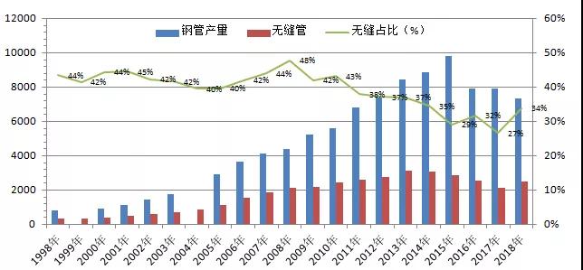 摘要:目前我國鋼管行業(yè)仍存在產(chǎn)能過剩、產(chǎn)業(yè)集中度低,特別是大型國企債務(wù)負(fù)擔(dān)重、成本高、競爭力不強(qiáng),且面臨貿(mào)易摩擦加劇等問題;本文通過簡述我國鋼管產(chǎn)業(yè)的發(fā)展概況,包括產(chǎn)量、表觀消費(fèi)量、進(jìn)出口情況及無縫鋼管價(jià)格走勢;分析目前我國鋼管行業(yè)發(fā)展存在的主要問題以及無縫鋼管產(chǎn)業(yè)面臨的形勢,并提出我國鋼管企業(yè)學(xué)習(xí)國外大型鋼管企業(yè)的發(fā)展經(jīng)驗(yàn),持續(xù)推進(jìn)產(chǎn)業(yè)整合的專業(yè)建議。 關(guān)鍵詞:鋼管;發(fā)展概況;問題;困境;建議 新中國誕生70年的歷程見證著我們偉大祖國的奮斗足跡,也見證著我國鋼鐵行業(yè)的飛速發(fā)展。這70年間,我國鋼管行業(yè)發(fā)生了翻天覆地的巨大變化。我國鋼管行業(yè),尤其是經(jīng)過近二十年的高速發(fā)展,在產(chǎn)品結(jié)構(gòu)、質(zhì)量水平、技術(shù)裝備等方面不斷得到優(yōu)化提升,已成為名副其實(shí)的世界鋼管制造大國,目前正在向世界鋼管工業(yè)強(qiáng)國邁進(jìn)[1-2]。 1 我國鋼管產(chǎn)業(yè)發(fā)展概況 我國鋼管的產(chǎn)能已占世界首位,大型無縫鋼管、大型焊接鋼管和不銹鋼管企業(yè)在產(chǎn)能規(guī)模上已經(jīng)進(jìn)入國際先進(jìn)行列。寶山鋼鐵股份有限公司(簡稱寶鋼股份)、天津鋼管集團(tuán)股份有限公司(簡稱天津鋼管)、衡陽華菱鋼管有限公司(簡稱華菱衡鋼)、內(nèi)蒙古包鋼鋼聯(lián)股份有限公司(簡稱包鋼)等無縫鋼管企業(yè)的產(chǎn)能進(jìn)入世界前10位;寶雞石油鋼管有限責(zé)任公司(簡稱寶雞鋼管)、渤海石油裝備制造有限公司(簡稱渤海裝備)、天津友發(fā)鋼管集團(tuán)股份有限公司(簡稱天津友發(fā))等多家焊管企業(yè)的產(chǎn)能進(jìn)入世界前5位;浙江久立特材科技股份有限公司(簡稱久立特材)的產(chǎn)能躋身于世界不銹鋼管材制造企業(yè)的前5位。我國大中型鋼管企業(yè)的裝備水平已經(jīng)達(dá)到國際先進(jìn)水平,無縫鋼管、焊接鋼管機(jī)組的種類、規(guī)格齊全,裝備新工藝先進(jìn)。 我國專用鋼管產(chǎn)品自給率達(dá)到99%以上。20世紀(jì)90年代中期,我國生產(chǎn)油井管的數(shù)量、品種和質(zhì)量都還遠(yuǎn)遠(yuǎn)滿足不了石油工業(yè)發(fā)展的需要。1949—1994年,45年間我國共消耗各種油井管1270萬t,其中進(jìn)口1150萬t,國產(chǎn)120萬t。1980年我國開始抓油井管的國產(chǎn)化,20世紀(jì)90年代,國家抓緊電站鋼材國產(chǎn)化工作,經(jīng)過近30年的發(fā)展,油井管國產(chǎn)化率從5%提高到目前的99%以上,我國也成為世界油井管生產(chǎn)基地。 1.1 生產(chǎn)情況 我國無縫鋼管產(chǎn)量2014年達(dá)到歷史最高水平后,受經(jīng)濟(jì)增速放緩、下游產(chǎn)業(yè)需求低落以及國際原油價(jià)格下滑等因素影響,2015年產(chǎn)量回落至2900萬t左右,2018年產(chǎn)量繼續(xù)下滑至2500萬t左右。同時(shí),隨著焊接鋼管生產(chǎn)技術(shù)的不斷改進(jìn),焊接鋼管產(chǎn)品質(zhì)量得到較大提升,取代了部分無縫鋼管產(chǎn)品,使得無縫鋼管產(chǎn)量在鋼管總產(chǎn)量中的占比呈現(xiàn)下降趨勢。我國無縫鋼管產(chǎn)量占鋼管總產(chǎn)量的比例由21世紀(jì)初的最高48%下降到目前的30%左右。1998—2018年我國無縫鋼管產(chǎn)量及其在鋼管中的占比情況如圖1所示。 2008—2017年我國無縫鋼管產(chǎn)量在世界無縫鋼管總產(chǎn)量中的占比情況如圖2所示。2006年我國無縫鋼管產(chǎn)量占世界總產(chǎn)量接近50%,2009—2017年達(dá)到65%-75%(2012年最高為74.6%)。 圖1 1998-2018年我國無縫鋼管產(chǎn)量及其在鋼管中的占比情況 圖2 2008-2017年我國無縫鋼管產(chǎn)量在世界無縫鋼管總產(chǎn)量中的占比情況 1.2 表觀消費(fèi)情況 2008—2018年我國無縫鋼管表觀消費(fèi)量情況如圖3所示。2008—2013年我國無縫鋼管表觀消費(fèi)量一直維持較快增速。2013年表觀消費(fèi)量達(dá)到峰值2641.8萬t后,隨著國內(nèi)經(jīng)濟(jì)增速趨緩,無縫鋼管消費(fèi)量開始下降,尤其油井管、長輸管線管、煤礦用支柱管等需求都有較大幅度的下降。2017年我國無縫鋼管消費(fèi)量下降至1715.4萬t。2018年消費(fèi)量恢復(fù)增長,表觀消費(fèi)量2082.2萬t,同比增長約21.4%,結(jié)束了連續(xù)4年的下降趨勢。2018年無縫鋼管市場需求回升,主要是受下游產(chǎn)業(yè)需求企穩(wěn)回升所致,尤其是石油價(jià)格的回升,拉動了油氣開發(fā)投資,進(jìn)而拉動油井管市場需求增長。 按照目前的消費(fèi)增長趨勢以及考慮消費(fèi)已進(jìn)入“峰值弧頂區(qū)”,預(yù)計(jì)2019—2025年我國無縫鋼管表觀消費(fèi)量不會超過2400萬t/年。 圖3 2008-2018年我國無縫鋼管表觀消費(fèi)量情況 1.3 進(jìn)出口情況 2000—2018年我國無縫鋼管進(jìn)出口情況如圖4所示。2018年,我國出口無縫鋼管422.5萬t,同比增長3.1%;主要出口品種是管線管(181.7萬t,同比下降8.1%,占無縫鋼管出口總量的43%),油井管(135.2萬t,同比增長19%,占無縫鋼管出口總量的32%),鍋爐管(16.9 萬t,同比增長11.9%,占無縫鋼管出口量的4%)。同年,我國進(jìn)口無縫鋼管25.8萬t,同比增長44.1%;主要進(jìn)口品種是鍋爐管(7.2萬t,同比下降18.8%,占無縫鋼管進(jìn)口總量的28%),油井