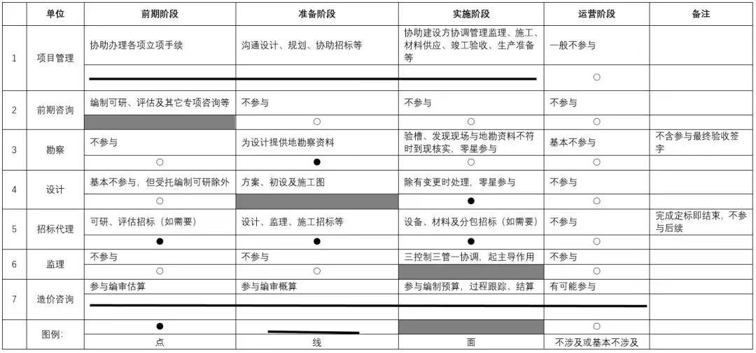 【導(dǎo)讀】全過(guò)程工程咨詢(xún)已成為當(dāng)今工程領(lǐng)域的熱點(diǎn)話題。本文將從工程建設(shè)的過(guò)程切入,梳理全過(guò)程工程咨詢(xún)的主要發(fā)展模式和各類(lèi)咨詢(xún)機(jī)構(gòu)業(yè)務(wù)專(zhuān)長(zhǎng),比較分析了標(biāo)準(zhǔn)型、全能型、模塊組合型、監(jiān)管型等組合模式的內(nèi)在特征,對(duì)全過(guò)程咨詢(xún)的團(tuán)隊(duì)負(fù)責(zé)人和牽頭單位提出了要求,認(rèn)為立足專(zhuān)業(yè)精神基礎(chǔ)之上的延伸與拓展,乃是全過(guò)程咨詢(xún)穩(wěn)定發(fā)展的基石。 一、從工程建設(shè)的過(guò)程說(shuō)起 工程建設(shè)是分階段進(jìn)行的。根據(jù)我國(guó)投資管理體制和項(xiàng)目建設(shè)程序,投資項(xiàng)目周期劃分為前期階段、準(zhǔn)備階段、實(shí)施階段和運(yùn)營(yíng)階段。 (一)前期階段 主要內(nèi)容包括:項(xiàng)目建議書(shū)(初步可行性研究)、可行性研究報(bào)告,咨詢(xún)?cè)u(píng)估。各種專(zhuān)項(xiàng)咨詢(xún),如節(jié)能、環(huán)評(píng)、安評(píng)、社會(huì)穩(wěn)定評(píng)價(jià)以及水土保持方案等。 (二)準(zhǔn)備階段 從項(xiàng)目可行性研究報(bào)告審批或項(xiàng)目申請(qǐng)報(bào)告核準(zhǔn)起,到項(xiàng)目正式開(kāi)工建設(shè)止。這階段的主要工作有:工程設(shè)計(jì)、籌資融資、對(duì)外談判、招標(biāo)投標(biāo)、簽訂合同、征地拆遷及移民安置、施工準(zhǔn)備(場(chǎng)地平整、通路、通水、通電等)。 (三)實(shí)施階段 從投資項(xiàng)目的主體工程破土動(dòng)工起,到工程竣工交付運(yùn)營(yíng)止。這階段的主要工作有:建筑工程施工、設(shè)備采購(gòu)安裝、工程監(jiān)理、合同管理、生產(chǎn)準(zhǔn)備、試生產(chǎn)考核、竣工驗(yàn)收等。這是項(xiàng)目管理周期中工程量最大、投入的人力、物力和財(cái)力最多、工程管理難度最大的階段。 (四)運(yùn)營(yíng)階段 從項(xiàng)目竣工驗(yàn)收交付使用起,到運(yùn)營(yíng)一定時(shí)期(非經(jīng)營(yíng)性項(xiàng)目)或回收全部投資(經(jīng)營(yíng)性項(xiàng)目)止。這個(gè)階段一般跨度較長(zhǎng),主要工作有:正常生產(chǎn)運(yùn)營(yíng)、項(xiàng)目后評(píng)價(jià)(運(yùn)營(yíng)了3~5年之后)、償還貸款、更新改造等。 二、目前主流的工程管理模式 目前在工程領(lǐng)域通行的管理模式是建設(shè)方(業(yè)主)、施工方及咨詢(xún)方的三角模式,也是國(guó)際流行已久的做法。我國(guó)工程建設(shè)嘗嘗涉及國(guó)有資金,為了杜絕國(guó)有資產(chǎn)流失,確保國(guó)有資產(chǎn)的保值增值,政府對(duì)國(guó)有資金的使用有嚴(yán)格的監(jiān)管與審計(jì)要求,這種審計(jì)往往是全方位、全流程、全口徑的。監(jiān)管的對(duì)象主要是建設(shè)方,監(jiān)管的實(shí)施部門(mén)多為政府審計(jì)、監(jiān)察部門(mén)或其授權(quán)的管理機(jī)構(gòu),從而形成了中國(guó)特有的對(duì)國(guó)有投資項(xiàng)目的工程管理模式,詳見(jiàn)圖1。 圖1 國(guó)有資金投資項(xiàng)目的通行管理模式 在建設(shè)方、施工方與咨詢(xún)方的三角模式中,建設(shè)方、施工方的地位與責(zé)任非常明確,但在咨詢(xún)方的情況相對(duì)復(fù)雜。它們多由獨(dú)立的前期咨詢(xún)、勘察設(shè)計(jì)、招標(biāo)代理、監(jiān)理、項(xiàng)目管理及造價(jià)咨詢(xún)等各種企業(yè)構(gòu)成,均為獨(dú)立的法律主體,在各自的專(zhuān)業(yè)領(lǐng)域內(nèi),為建設(shè)提供各類(lèi)技術(shù)或管理服務(wù),彼此的工作呈平行關(guān)系,很難找到一個(gè)明確的責(zé)任主體來(lái)對(duì)整個(gè)工程咨詢(xún)側(cè)負(fù)責(zé)。碎片化的工程咨詢(xún)存在諸多問(wèn)題。 1.責(zé)任主體不明。工程建設(shè)是個(gè)整體,涉及到質(zhì)量、進(jìn)度、投資的控制,安全、合同、信息的管理及多方面協(xié)調(diào)。由于分屬不同的咨詢(xún)企業(yè)負(fù)責(zé),一旦項(xiàng)目建設(shè)出現(xiàn)問(wèn)題,在工程咨詢(xún)方面很難找到具體的負(fù)責(zé)單位。 2.造成效率損失。整個(gè)工程實(shí)施鏈條上的前期咨詢(xún)、勘察、設(shè)計(jì)、監(jiān)理等屬于各自的主體,不能形成有效的銜接,增大了建設(shè)方的協(xié)調(diào)工作量,拖慢了工程進(jìn)度,也成為返工或變更的一大原因。 3.激化工作矛盾。以實(shí)施階段為例,監(jiān)理與造價(jià)咨詢(xún)單位都在現(xiàn)場(chǎng)為建設(shè)單位服務(wù),監(jiān)理更強(qiáng)調(diào)質(zhì)量與進(jìn)度,造價(jià)關(guān)心成本與價(jià)格,各管一塊使各方都只從自身角度考慮問(wèn)題,形成工作沖突,只好由建設(shè)方來(lái)平衡,不利于工程項(xiàng)目的順利進(jìn)行。 4.形成信息孤島。表面上看,各個(gè)咨詢(xún)單位都在投入精力努力收集信息,但從自身角度出發(fā)收集的每個(gè)階段或環(huán)節(jié)形成的信息,很難與其它階段與環(huán)節(jié)的共享或溝通,造成信息斷層和丟失,也影響后期的改造升級(jí)。 5.抗風(fēng)險(xiǎn)能力弱。碎片化的咨詢(xún)市場(chǎng)產(chǎn)生了眾多的小微公司,行業(yè)集中度不高,抗風(fēng)險(xiǎn)能力較低,整體水平很難再上臺(tái)階,同進(jìn)也造成了從