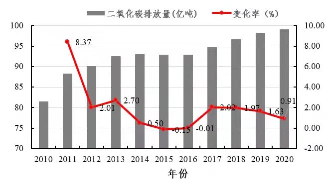 摘要: 近年來二氧化碳排放持續(xù)快速增長,全球氣候變暖已成不爭事實。國際社會為共同應(yīng)對氣候變化做出了積極努力,截至2020年底,全球已有40余個國家和經(jīng)濟體正式宣布了碳中和目標(biāo)。我國化石能源消費和二氧化碳排放持續(xù)增長,占全球比重逐步升高,為提升發(fā)展質(zhì)量,彰顯大國責(zé)任,需要積極科學(xué)推動碳達峰碳中和工作。同時,雙碳發(fā)展將對我國經(jīng)濟社會產(chǎn)生重要深遠影響,能源結(jié)構(gòu)、產(chǎn)業(yè)布局將發(fā)生深刻調(diào)整。面對重大機遇挑戰(zhàn),應(yīng)以戰(zhàn)略性思維統(tǒng)籌推進雙碳工作,找準(zhǔn)發(fā)力點,分階段穩(wěn)步實施,努力實現(xiàn)經(jīng)濟社會高質(zhì)低碳創(chuàng)新發(fā)展。 關(guān)鍵詞: 雙碳發(fā)展;全球變暖;能源消費;二氧化碳排放;應(yīng)對策略 一、推動雙碳發(fā)展的背景和意義 (一)全球氣候環(huán)境發(fā)生變化 1. 二氧化碳濃度快速增長 近兩百多年來,人類活動促使大氣中二氧化碳濃度快速增長。工業(yè)革命以前,大氣中的二氧化碳濃度維持在280 ppm(parts per million)左右,2015年大氣中二氧化碳濃度打破地球史上維持了近250萬年的記錄,突破400 ppm。近年來,二氧化碳濃度繼續(xù)快速增長,有研究表明,20世紀(jì)50年代末期,二氧化碳濃度年均增速約為0.2 ppm;2005—2019年期間二氧化碳濃度以每年2.2 ppm的速度增長,2019年二氧化碳濃度達到415 ppm。如依此速度持續(xù)增長,預(yù)計到21世紀(jì)中葉大氣中二氧化碳濃度將達到工業(yè)革命前濃度的兩倍以上。 2. 全球地表溫度波動上升 美國國家航空和航天局(NASA)戈達德空間研究所(Goddard Institute for Space Studies)開發(fā)了基于地理信息系統(tǒng)的全球地表溫度分析工具(GISS Surface Temperature Analysis)。利用該工具,可以得到自1880年以來全球年平均地表氣溫的變化情況(圖1),以及全球地表溫度季節(jié)性周期變化情況(圖2)。從圖中可以觀察到,1880至1980年百余年間,全球年平均地表氣溫總體波動較小,處于溫度緩慢上漲和下降的小幅波動相繼疊加狀態(tài)。1980年之后,全球年平均地表溫度呈現(xiàn)明顯的波動上升趨勢,而且隨著時間的推移這種趨勢愈發(fā)明顯。同時,2020年與工業(yè)化前相比,全球平均地表溫度已經(jīng)上升了1.2 ± 0.1 ℃。 數(shù)據(jù)來源:美國國家航空和航天局戈達德空間研究所。 圖1 全球年平均地表氣溫變化趨勢圖 數(shù)據(jù)來源:美國國家航空和航天局戈達德空間研究所。 圖2 全球溫度季節(jié)性周期變化情況 3. 全球變暖問題愈發(fā)凸顯 近年來,科學(xué)家通過儀器觀測到的全球氣候變化是20世紀(jì)80年代以來變化最快的,全球變暖問題愈發(fā)凸顯。觀測資料和研究表明,全球氣候正在經(jīng)歷一次以氣候變暖為主要特征的顯著變化。聯(lián)合國政府間氣候變化專門委員會(IPCC)數(shù)十年來持續(xù)跟蹤系統(tǒng)評估,基本認定工業(yè)革命以來以化石燃料大規(guī)模開發(fā)利用為代表的人類活動是當(dāng)前全球變暖的主要原因。人類活動中對全球變暖影響最大的因素是二氧化碳、甲烷以及氧化亞氮等溫室氣體的排放。據(jù)世界氣象組織(WMO)研究表明,2019年全球溫室氣體存量濃度達到歷史新高,且2020年成為有記錄以來三個最暖的年份之一。 (二)世界和我國碳排放情況 1. 全球化石能源消費情況 石油、天然氣、煤炭等化石燃料是目前人類活動使用的最主要的能源消費產(chǎn)品,同時也是全球二氧化碳等溫室氣體排放的主要貢獻者。根據(jù)2021年7月英國石油公司發(fā)布的《世界能源統(tǒng)計年鑒》(以下簡稱年鑒),2020年全球一次能源消費量為556.63EJ(EJ=1018焦耳),受全球新冠肺炎疫情沖擊等因素影響,與2019年相比下降4.28個百分點,為2009年以來首次出現(xiàn)一次能源消費負增長。2010至2020年全球一次能源消費總量及增長率變化情況如圖3所示。從圖中可以看出,自2012年以來,全球一次能源消費增長速率放緩,2018年增速略有增加后2019年更緩,直至2020年出現(xiàn)負增長。 圖3 2010-2020年全球一次能源消費總量及增長率(單位EJ=1018焦耳) 2019和2020年全球一次能源消費情況如圖4和圖5所示。根據(jù)年鑒統(tǒng)計數(shù)據(jù),2019年全球一次能源消費量為581.5EJ,其中化石能源消費量為490.1EJ,占比約為84.3%,同比下降0.5個百分點;2020年全球一次能源消費量為556.6EJ,其中化石能源消費量為462.8EJ,占比約為83.1%,同比下降1.2個百分點。石油、天然氣、煤炭等化石燃料消費總量逐步減少,水電、新能源等消費總量和占比逐步增長。 圖4 2019和2020年全球一次能源消費情況(單位EJ=1018焦耳) 圖5 2019和2020年全球一次能源消費比例 2. 全球二氧化碳排放情況 根據(jù)年鑒統(tǒng)計數(shù)據(jù),2010至2020年全球由于化石能源消費產(chǎn)生的二氧化碳排放情況如圖6所示。自2012年以來,全球由于化石能源消費產(chǎn)生的二氧化碳排放量增速放緩,2018年增速略有增加后2019年增速更緩,2020年出現(xiàn)負增長。2019年,全球由于化石能源消費產(chǎn)生的二氧化碳排放量為343.57億噸,同比僅增長0.02%。2020年,全球由于化石能源消費產(chǎn)生的二氧化碳排放量為322.84億噸,同比下降6.03%。從增長趨勢來看,與能源相關(guān)的二氧化碳排放量增速逐步放緩,低于近五年的平均增速1.1%。 圖6 2010-2020年全球二氧化碳