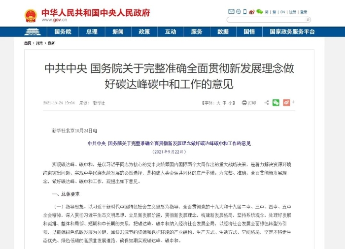2020年9月,在第七十五屆聯(lián)合國大會一般性辯論上,習近平總書記代表中國向世界莊嚴承諾:二氧化碳排放力爭于2030年前達到峰值,努力爭取2060年前實現(xiàn)碳中和。 一年后,中共中央、國務院公布了一份重磅文件——《關于完整準確全面貫徹新發(fā)展理念做好碳達峰碳中和工作的意見》(以下簡稱《意見》)。 這份文件,對習近平承諾的碳達峰、碳中和目標進行了系統(tǒng)謀劃和總體部署。作為未來一個時期內指導“雙碳”工作的綱領性文件,這份《意見》相當值得研究學習。