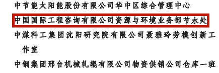 | 中咨公司資源與環(huán)境業(yè)務(wù)部節(jié)水處榮獲“全國(guó)巾幗文明崗”稱號(hào) | ||||