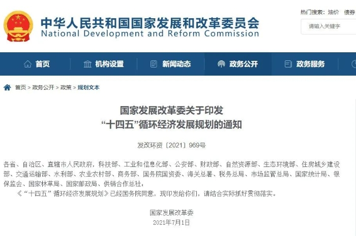 | 保障資源安全 助力雙碳目標(biāo) ——《“十四五”循環(huán)經(jīng)濟發(fā)展規(guī)劃》解讀 近日,經(jīng)國務(wù)院同意,國家發(fā)展改革委印發(fā)了《“十四五”循環(huán)經(jīng)濟發(fā)展規(guī)劃》(發(fā)改環(huán)資﹝2021﹞969號,以下簡稱《規(guī)劃》),全面部署了今后一段時期我國循環(huán)經(jīng)濟發(fā)展的總體思路、主要任務(wù)、重點工程行動和保障措施,指明了“十四五”循環(huán)經(jīng)濟發(fā)展路徑,對于推進循環(huán)經(jīng)濟發(fā)展,構(gòu)建綠色低碳循環(huán)的經(jīng)濟體系,助力實現(xiàn)碳達峰、碳中和目標(biāo)意義重大。
