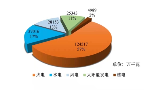 一、電力系統(tǒng)發(fā)展現(xiàn)狀 目前,我國(guó)電網(wǎng)已形成以華北、華中、華東、東北、西北、南方等區(qū)域電網(wǎng)為主體,區(qū)域電網(wǎng)間交直流互聯(lián),覆蓋全部?。▍^(qū)、市)的大型電網(wǎng)。截至2020年底,全國(guó)220千伏及以上輸電線路長(zhǎng)度78.98萬(wàn)千米,同比增長(zhǎng)4.6%;220千伏及以上變電設(shè)備容量448680萬(wàn)千伏安,同比增長(zhǎng)為5.2%。全國(guó)電網(wǎng)發(fā)電裝機(jī)22億千瓦,同比增長(zhǎng)9.5%,其中火電12.45億千瓦、水電3.7億千瓦、核電0.50億千瓦、風(fēng)電2.82億千瓦、太陽(yáng)能發(fā)電2.53億千瓦(見(jiàn)圖1)。我國(guó)電網(wǎng)規(guī)模和發(fā)電裝機(jī)規(guī)模均居世界首位。2020年全社會(huì)用電量75110億千瓦時(shí),同比增長(zhǎng)3.1%,“十三五”年均增速5.7%。