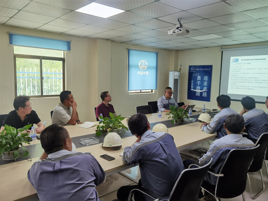 作斌董事長(前左二)聽取監(jiān)理部工作情況匯報(bào)
