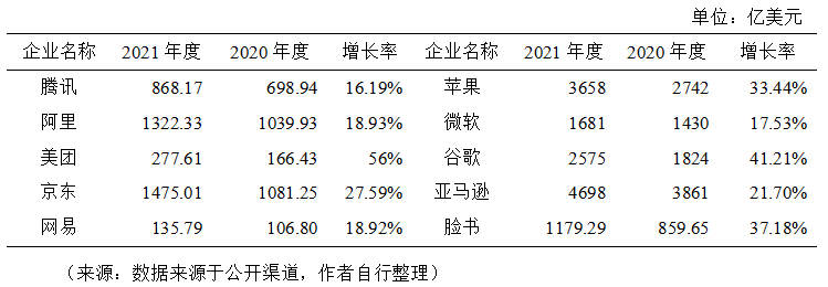 近年來我國數(shù)字經(jīng)濟規(guī)模整體呈現(xiàn)持續(xù)擴大趨勢,2005年我國數(shù)字經(jīng)濟規(guī)模為2.6萬億元,2021年擴張至45.5萬億元,在GDP中占比由14.2%提升至39.8%,市場規(guī)模位居全球第二,已經(jīng)成為名副其實的數(shù)字經(jīng)濟“大國”。然而,當(dāng)前面臨的數(shù)字經(jīng)濟增速放緩、頭部平臺企業(yè)市值下滑、營收不高、利潤率下滑、新增獨角獸企業(yè)數(shù)量下降等現(xiàn)象暴露出我國數(shù)字經(jīng)濟發(fā)展動能有所減弱,需引起高度重視。 01 數(shù)字經(jīng)濟創(chuàng)新發(fā)展動能減弱的幾個表現(xiàn) (一)數(shù)字經(jīng)濟增速出現(xiàn)放緩。近年來,在全球地緣局勢緊張、疫情反復(fù)及強監(jiān)管的影響下,我國數(shù)字經(jīng)濟的增長勢頭出現(xiàn)了放緩。數(shù)據(jù)表明,2014年~2018年間,我國數(shù)字經(jīng)濟的平均增速接近20%,2019年~2021年間,數(shù)字經(jīng)濟的平均增速為13.8%,尤其是2020年,增速僅為9.6%,較上一年下滑5.9個百分點。2021年同比名義增長16.2%,但與2017~2018年間連續(xù)維持20%以上的名義增速,2002年~2018年間實現(xiàn)了208倍的歷史跨越相比,仍存在下滑趨勢。 圖1 2014-2021年我國數(shù)字經(jīng)濟增速 來源:數(shù)據(jù)來源于公開渠道,作者自行整理 (二)頭部數(shù)字平臺企業(yè)市值下滑嚴(yán)重。截至2022年3月底,我國平臺企業(yè)中市值排名前5位的依次是騰訊、阿里、美團、京東和網(wǎng)易,其中騰訊市值4594億美元,同比下降39.78%,阿里市值2949億美元,同比下降52.59%,美團市值1228億美元,同比下降46.32%,下滑幅度均超過三分之一。美國平臺企業(yè)中市值排名前5位的依次是蘋果、微軟、谷歌、亞馬遜和臉書,其中蘋果市值28500億美元,同比上漲38.96%,微軟市值23110億美元,同比上漲29.98%,谷歌市值18420億美元,同比上漲32.23%,上漲幅度均超過四分之一。過去的一年間,中美互聯(lián)網(wǎng)平臺企業(yè)的市值差距越來越大。 表1 中美前5大數(shù)字平臺企業(yè)市值對比 (三)頭部數(shù)字平臺企業(yè)營收整體不高。營業(yè)收入方面,2021年度我國平臺企業(yè)營收實現(xiàn)增長。其中京東營業(yè)收入1475.01億美元,同比增長27.59%,阿里營業(yè)收入1322.33億美元,同比增長18.93%,騰訊營業(yè)收入868.17億美元,同比增長16.19%;美國平臺企業(yè)中亞馬遜營業(yè)收入4698億美元,同比增長21.7%,蘋果營業(yè)收入3658億美元,同比增長33.44%,谷歌營業(yè)收入2575億美元,同比增長41.21%。我國京東、阿里的營業(yè)收入均不足亞馬遜的三分之一,且我國前5大平臺企業(yè)差距較大,美團和網(wǎng)易的營業(yè)收入僅為277.61億美元和135.79億美元,我國前5大平臺企業(yè)的平均營業(yè)收入不足美國前5大平臺企業(yè)的30%。 表2 中美前5大數(shù)字平臺企業(yè)營業(yè)收入對比 (四)頭部數(shù)字平臺企業(yè)利潤出現(xiàn)持續(xù)下滑。利潤方面,2021年度我國平臺企業(yè)利潤下滑嚴(yán)重,其中美團和京東出現(xiàn)了凈虧損。具體來看,美團虧損36.48億美元,同比下降599.96%,京東虧損5.52億美元,同比下降107.21%,阿里凈利潤為96.04億美元,同比下降58.78%;美國平臺企業(yè)中蘋果凈利潤946.8億美元,同比增長64.92%,谷歌凈利潤760.33億美元,同比增長88.81%,微軟凈利潤612.71億美元,同比增長38.37%,亞馬遜和臉書的凈利潤均超過300億美元。我國前5大平臺企業(yè)的平均凈利潤不足美國前5大平臺企業(yè)的15%。 表3 中美前5大數(shù)字平臺企業(yè)利潤對比 (五)頭部數(shù)字平臺企業(yè)營收結(jié)構(gòu)側(cè)重消費者業(yè)務(wù)。收入結(jié)構(gòu)方面,我國前5大平臺企業(yè)更依賴電商、游戲、外賣等面向消費者的業(yè)務(wù),企業(yè)營收仍集中在國內(nèi)市場,美國前5大平臺企業(yè)更依賴智能云服務(wù)、硬件服務(wù)和電商,面向更廣闊的全球市場。 表4 中美前5大平臺企業(yè)收入結(jié)構(gòu)對比 (六)獨角獸企業(yè)數(shù)量增長明顯減速。無論是獨角獸企業(yè)的新增數(shù)量還是準(zhǔn)獨角獸企業(yè)的形成數(shù)量,我國都滯后于美國甚至印度。2018年以來的中美貿(mào)易摩擦以及2021年初以來的平臺經(jīng)濟“強監(jiān)管”政策都加速了新增獨角獸公司的數(shù)量的全球分化。根據(jù)最新榜單,中國的新興獨角獸公司有27家,落后于印度的32家,2021年中國新增獨角獸企業(yè)僅3家,明顯落后于美國的132家。在全球數(shù)字經(jīng)濟的競爭格局中“不進則退”。 圖2 2010~2021年中美新增獨角獸企業(yè)對比 來源:數(shù)據(jù)來源于公開渠道,作者自行整理 02 正確認識和把握數(shù)字經(jīng)濟的幾個關(guān)系 (一)在持續(xù)發(fā)展中實現(xiàn)安全。面對安全和發(fā)展,要把發(fā)展擺在首位,是第一要務(wù),通過發(fā)展來解決安全問題。從國際競爭的角度來說,數(shù)字經(jīng)濟發(fā)展放緩就意味著國家的安全隱患增加。涉及個人隱私和國家信息安全的問題,可以利用技術(shù)發(fā)展來尋求解決的辦法,比如區(qū)塊鏈就在智能合約中發(fā)揮著重要作用,區(qū)塊鏈技術(shù)把可能出現(xiàn)的造假都從技術(shù)上堵住了,又如保護個人隱私問題,有了隱私計算技術(shù)就可以實現(xiàn)對數(shù)據(jù)“可用而不可見”,既保護個人隱私又讓數(shù)據(jù)得以流通和使用。故而,當(dāng)經(jīng)