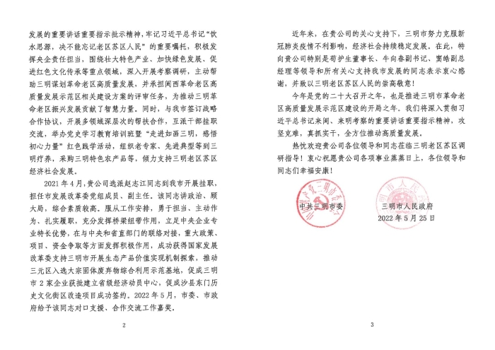 | 這里有鮮美可口的沙縣小吃 這里有服裝精致考究的梅林戲 這里曾經(jīng)留下習(xí)近平總書記12次到訪的足跡 這里是:福建三明 習(xí)近平總書記長期關(guān)心三明發(fā)展、情系老區(qū)人民,在福建工作期間,先后11次到三明調(diào)研考察,作出了“青山綠水是無價之寶”“畫好山水畫”“不要忘記老區(qū)”等一系列重要指示。2021年3月,習(xí)近平總書記再次親臨三明考察指導(dǎo),對三明老區(qū)蘇區(qū)發(fā)展特別是醫(yī)改、林改、鄉(xiāng)村振興、沙縣小吃等作出新的重要囑托。 中咨公司作為咨詢服務(wù)“國家隊(duì)”,深入貫徹落實(shí)習(xí)近平總書記重要指示精神,承擔(dān)了全國革命老區(qū)振興發(fā)展的一系列咨詢服務(wù)任務(wù)。在評估工作中,中咨公司深入調(diào)研三明市特色亮點(diǎn),報(bào)送關(guān)于三明市統(tǒng)籌推進(jìn)“五位一體”總體布局和協(xié)調(diào)推進(jìn)“四個全面”戰(zhàn)略布局的調(diào)研報(bào)告。2020年公司領(lǐng)導(dǎo)牽頭,組織開展調(diào)查研究,形成上報(bào)政策研究報(bào)告,“三明實(shí)踐”被中宣部樹為重大典型。 中咨公司與三明“結(jié)緣”已深,去年開始互派優(yōu)秀年輕干部掛職交流。2021年4月,趙志江作為中咨公司選派的優(yōu)秀年輕干部赴三明市掛職鍛煉,任三明市發(fā)改委黨組成員、副主任。掛職期間,趙志江始終以合格共產(chǎn)黨員的標(biāo)準(zhǔn)要求自己,積極發(fā)揮模范帶頭作用,從央企到地方,迅速轉(zhuǎn)變工作角色,沉下心撲下身,積極謀劃,履職盡責(zé),勇于擔(dān)當(dāng),高標(biāo)準(zhǔn)、高質(zhì)量完成掛職各項(xiàng)任務(wù)。 三明日報(bào)報(bào)道趙志江事跡 激活紅色資源 深挖革命老區(qū)示范區(qū)新機(jī)遇 習(xí)近平總書記指出,福建是革命老區(qū),黨史事件多、紅色資源多、革命先輩多,開展黨史學(xué)習(xí)教育具有獨(dú)特優(yōu)勢。三明市既是革命老區(qū),也是全國率先開展精神文明建設(shè)的城市之一。如何發(fā)揮自身戰(zhàn)略咨詢專業(yè)優(yōu)勢,幫助革命老區(qū)換新顏,趙志江先從三明市參與革命老區(qū)高質(zhì)量發(fā)展示范區(qū)建設(shè)入手。 趙志江積極參與革命老區(qū)振興發(fā)展“1+N+X”重大政策跟蹤對接,先后10余次赴國家發(fā)改委振興司、地區(qū)司等7個司局,對接閩西革命老區(qū)高質(zhì)量發(fā)展示范區(qū)建設(shè)方案,爭取相關(guān)事項(xiàng)。目前該方案已獲國務(wù)院批復(fù)(國函﹝2022﹞20號),國家發(fā)改委正式印發(fā)實(shí)施(發(fā)改振興﹝2022﹞424號)。 為持續(xù)支持三明老區(qū)蘇區(qū)經(jīng)濟(jì)社會發(fā)展,開展多領(lǐng)域深層次幫扶合作,三明市發(fā)改委、林業(yè)局、交通局三位同志到中咨公司相關(guān)部門掛職交流,先后承擔(dān)三元區(qū)大宗固廢綜合利用產(chǎn)業(yè)發(fā)展研究、三明市生態(tài)產(chǎn)品價值實(shí)現(xiàn)機(jī)制研究等課題。 中咨公司與三明市合作,成功舉辦黨史學(xué)習(xí)教育培訓(xùn)班暨“走進(jìn)如畫三明,感悟初心力量”紅色踐學(xué)活動,組織老專家、先進(jìn)典型等赴三明療養(yǎng),采購三明特色農(nóng)產(chǎn)品,為三明革命老區(qū)高質(zhì)量發(fā)展注入源源動力。 中咨公司在三明舉辦黨史學(xué)習(xí)教育專題培訓(xùn)班開班現(xiàn)場 繪就生態(tài)畫卷 賦能三明綠色發(fā)展新藍(lán)圖 習(xí)近平總書記在武夷山國家公園智慧管理中心考察時指出,要堅(jiān)持生態(tài)保護(hù)第一,統(tǒng)籌保護(hù)和發(fā)展,有序推進(jìn)生態(tài)移民,適度發(fā)展生態(tài)旅游,實(shí)現(xiàn)生態(tài)保護(hù)、綠色發(fā)展、民生改善相統(tǒng)一。 趙志江多次赴省發(fā)改委與工信廳匯報(bào)對接,助推三元區(qū)成功入選大宗固體廢棄物綜合利用示范基地,全國僅有40家。充分利用在閩工作期間奠定的良好基礎(chǔ),主動協(xié)助市發(fā)改委分管領(lǐng)導(dǎo)與有關(guān)部門匯報(bào),做好大田縣閩江流域山水林田湖草生態(tài)保護(hù)修復(fù)試點(diǎn)工程項(xiàng)目驗(yàn)收。該項(xiàng)目獲得省級正向激勵資金2500萬元。 此外,趙志江還積極做好體制機(jī)制創(chuàng)新案例編輯報(bào)送工作,案例“將樂縣打造‘綠水青山’贏得‘金山銀山’”獲得省機(jī)關(guān)黨工委組織的改革創(chuàng)新評選活動“優(yōu)秀獎”。 發(fā)揮智庫優(yōu)勢 探索老區(qū)高質(zhì)量發(fā)展新路徑 在三明考察期間,習(xí)近平總書記詳細(xì)了解了沙縣小吃發(fā)展現(xiàn)狀和前景。他指出,鄉(xiāng)村要振興,因地制宜選擇富民產(chǎn)業(yè)是關(guān)鍵。 趙志江與專家團(tuán)隊(duì)圍繞三明市產(chǎn)業(yè)升級、鄉(xiāng)村振興、綠色發(fā)展、民生提升等重點(diǎn)領(lǐng)域深入調(diào)研,謀劃沙縣小吃產(chǎn)業(yè)、綠色經(jīng)濟(jì)、氟新材料產(chǎn)業(yè)等重點(diǎn)專項(xiàng)發(fā)展思路,承擔(dān)閩西革命老區(qū)高質(zhì)量發(fā)展示范區(qū)相關(guān)建設(shè)方案評審任務(wù),以及包括三明在內(nèi)的革命老區(qū)重點(diǎn)城市與發(fā)達(dá)地區(qū)部分城市對口合作方案的論證工作,為三明革命老區(qū)振興發(fā)展貢獻(xiàn)了“中咨方案”。 在招商方面, 趙志江積極投身