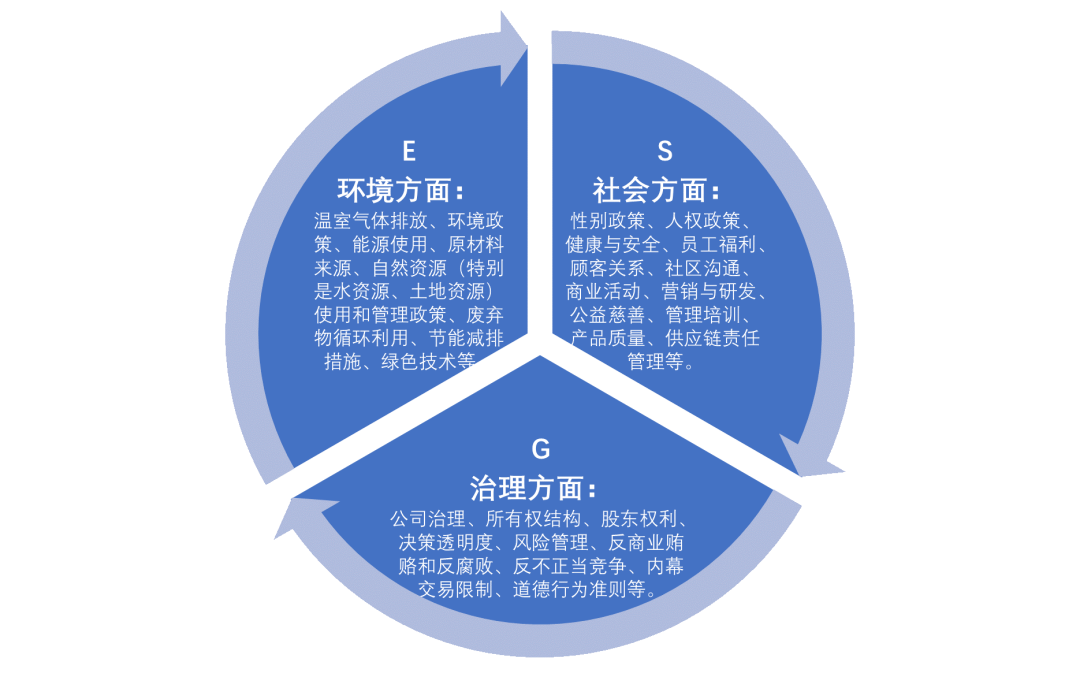 ESG是英文Environmental(環(huán)境)、Social(社會)和Governance(治理)的縮寫,是一種關(guān)注企業(yè)環(huán)境、社會、治理績效而非財(cái)務(wù)績效的投資理念和企業(yè)評價(jià)標(biāo)準(zhǔn)?;贓SG評價(jià),投資者可以評估其投資行為和企業(yè)(投資對象)在促進(jìn)經(jīng)濟(jì)可持續(xù)發(fā)展、履行社會責(zé)任等方面的貢獻(xiàn)。