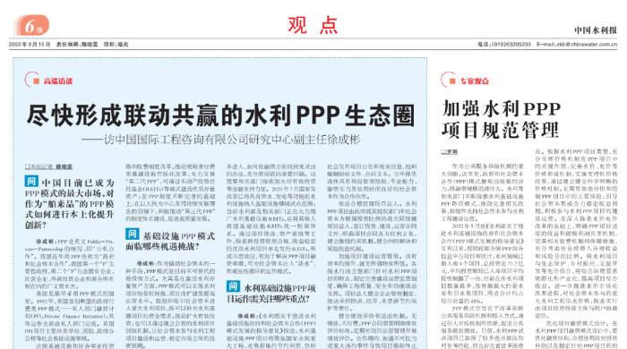 徐成彬 | 盡快形成聯(lián)動共贏的水利PPP生態(tài)圈