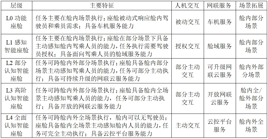 對(duì)汽車智能座艙未來(lái)發(fā)展趨勢(shì)的思考和預(yù)判 于德營(yíng) 劉鍔居 一、汽車智能座艙發(fā)展概述 汽車智能座艙是指采用先進(jìn)的傳感、計(jì)算和通訊等技術(shù),對(duì)車輛內(nèi)部環(huán)境進(jìn)行實(shí)時(shí)感知、分析、調(diào)節(jié)及控制,以提供舒適便捷和安全駕乘體驗(yàn)的車內(nèi)環(huán)境。智能座艙可通過(guò)感知駕乘者的身體姿態(tài)、生理狀態(tài)、行為習(xí)慣等信息,與汽車控制系統(tǒng)進(jìn)行數(shù)據(jù)交互和協(xié)同,實(shí)現(xiàn)“千車千面”的個(gè)性化駕乘體驗(yàn)。 (一)汽車座艙發(fā)展歷程 按照實(shí)現(xiàn)功能方式,可將汽車座艙發(fā)展歷程分為機(jī)械化、電子化和智能化三個(gè)階段。20世紀(jì)80年代以前屬于機(jī)械化階段。汽車座椅、方向盤等部件均為機(jī)械件,儀表盤采用簡(jiǎn)易的機(jī)械指針,配置簡(jiǎn)單的收音機(jī),控制開關(guān)主要采用物理按鍵,各部件相互獨(dú)立,功能單一。從20世紀(jì)80年代至2015年屬于電子化階段。座艙內(nèi)配備單一電子顯示屏,極少數(shù)高端車型開始應(yīng)用全液晶儀表;部分物理按鍵替代為觸摸開關(guān),娛樂和導(dǎo)航功能廣泛應(yīng)用,此時(shí)的電子顯示屏分辨率較低、響應(yīng)速度慢,艙內(nèi)整體集成度和智能化程度較低。2015年之后進(jìn)入智能化階段,全液晶儀表、大尺寸中控屏、多聯(lián)屏、流媒體后視鏡、語(yǔ)音交互、抬頭顯示等新技術(shù)開始應(yīng)用,智能感知和場(chǎng)景化服務(wù)不斷增強(qiáng),信息娛樂系統(tǒng)功能逐漸豐富,交互方式趨于多樣化,智能座艙功能集成度持續(xù)提高。 (二)汽車智能座艙分級(jí) 根據(jù)中國(guó)汽車工程學(xué)會(huì)2023年5月發(fā)布的《汽車智能座艙分級(jí)與綜合評(píng)價(jià)白皮書》,智能座艙可按照人機(jī)交互、網(wǎng)聯(lián)服務(wù)、場(chǎng)景拓展三個(gè)技術(shù)維度分為L(zhǎng)0—L4五個(gè)級(jí)別,在人機(jī)交互維度,按照座艙任務(wù)的執(zhí)行過(guò)程表述為感知主體和執(zhí)行主體,等級(jí)越高表示智能座艙任務(wù)主動(dòng)交互能力越強(qiáng);在網(wǎng)聯(lián)服務(wù)維度,按照座艙任務(wù)的服務(wù)內(nèi)容分為從艙域服務(wù)到社會(huì)級(jí)服務(wù)的四個(gè)等級(jí),不同等級(jí)表示智能座艙任務(wù)服務(wù)內(nèi)容的不斷豐富;在場(chǎng)景拓展維度,按照座艙任務(wù)的執(zhí)行范圍分為艙內(nèi)場(chǎng)景和艙外場(chǎng)景,不同等級(jí)表示智能座艙任務(wù)執(zhí)行場(chǎng)景的不斷拓展。汽車智能座艙分級(jí)如表1所示。 表1 汽車智能座艙分級(jí) 數(shù)據(jù)來(lái)源:《汽車智能座艙分級(jí)與綜合評(píng)價(jià)白皮書》 (三)智能座艙未來(lái)發(fā)展階段 截至目前,智能座艙已完成L0、L1級(jí)的技術(shù)迭代,步入L2級(jí)發(fā)展階段,具備在艙內(nèi)外部分場(chǎng)景下的主動(dòng)感知與主動(dòng)執(zhí)行能力,可持續(xù)升級(jí)的云服務(wù)能力逐漸普及。具備艙內(nèi)全場(chǎng)景、艙外部分場(chǎng)景下主動(dòng)感知與主動(dòng)執(zhí)行能力的L3級(jí)智能座艙開始逐步導(dǎo)入,預(yù)計(jì)將在2025年左右完成過(guò)渡,L4級(jí)智能座艙預(yù)計(jì)將在2030年開始導(dǎo)入。智能座艙分階段發(fā)展里程碑如圖1所示。 二、發(fā)展智能座艙的意義 (一)促進(jìn)汽車產(chǎn)業(yè)發(fā)展 全球汽車智能座艙市場(chǎng)規(guī)模保持快速增長(zhǎng)態(tài)勢(shì),消費(fèi)者對(duì)座艙智能科技的配置需求逐漸提升。據(jù)IHS markit調(diào)研數(shù)據(jù),61.3%的用戶認(rèn)為良好的座艙體驗(yàn)將極大提升購(gòu)車興趣,智能座艙配置水平成為僅次于安全配置的第二大類關(guān)鍵要素,其重要程度已超過(guò)動(dòng)力、空間與價(jià)格等要素,這一偏好在年齡位于25~35歲的新一代消費(fèi)者中尤為顯著。推動(dòng)智能座艙技術(shù)迭代升級(jí),提升量產(chǎn)車標(biāo)配搭載率,可有效提高消費(fèi)者購(gòu)車意愿,促進(jìn)汽車產(chǎn)業(yè)發(fā)展。 (二)持續(xù)提升用戶體驗(yàn) 隨著智能網(wǎng)聯(lián)、智能駕駛和智慧城市技術(shù)的發(fā)展,汽車的產(chǎn)品形態(tài)將被重新定義。以人工智能和大數(shù)據(jù)驅(qū)動(dòng)為依托,智能座艙的使用場(chǎng)景將更加豐富,汽車將不再是單純的代步工具,用戶在車內(nèi)即可實(shí)現(xiàn)休息、娛樂和辦公等需求。根據(jù)駕乘者的偏好、習(xí)慣和需求,提供更加舒適、智能的駕乘體驗(yàn),不斷實(shí)現(xiàn)信息、娛樂、互聯(lián)等功能的全面深度融合,讓座艙成為家居和辦公場(chǎng)景之外的有效延伸,打造人們未來(lái)的“第三生活空間”。 (三)延伸汽車價(jià)值鏈條 智能座艙推動(dòng)汽車服務(wù)、運(yùn)營(yíng)和數(shù)據(jù)變得更加重要,車企可通過(guò)OTA、車載APP等功能提升用戶體驗(yàn)及歸屬感,增加用戶的活躍度;通過(guò)商業(yè)運(yùn)營(yíng)引入第三方生態(tài)合作伙伴,拓展汽車市場(chǎng)的商業(yè)模式,提升產(chǎn)品的附加值。盡管大部分企業(yè)目前尚未在座艙附加服務(wù)上獲得即時(shí)收益,但用戶的付費(fèi)意愿逐漸升高,消費(fèi)習(xí)慣正逐漸養(yǎng)成,為延伸汽車產(c