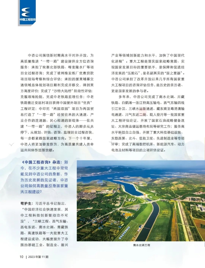 繼續(xù)用高質(zhì)量咨詢服務(wù)護(hù)航“中國工程”——專訪中國國際工程咨詢有限公司黨委書記、董事長、總經(jīng)理茍護(hù)生