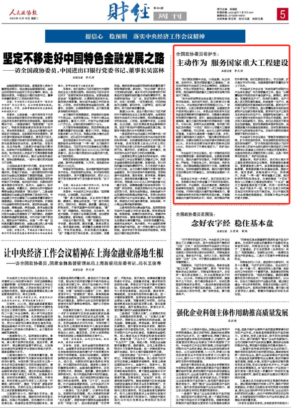 △全國政協(xié)委員,中咨公司黨委書記、董事長茍護(hù)生 “黨中央團(tuán)結(jié)帶領(lǐng)全黨全國人民有效應(yīng)對各種風(fēng)險挑戰(zhàn),經(jīng)濟(jì)回升向好,前三季度GDP增長5.2%,對全球經(jīng)濟(jì)增長的貢獻(xiàn)超過30%?!逼堊o(hù)生表示,從前三季度投資數(shù)據(jù)看,全國固定資產(chǎn)投資同比增長3.1%,體現(xiàn)出政府投資作為宏觀政策逆周期調(diào)節(jié)的重要抓手,對穩(wěn)增長調(diào)結(jié)構(gòu)所發(fā)揮的關(guān)鍵作用。其中,基礎(chǔ)設(shè)施建設(shè)投資數(shù)據(jù)亮眼,重大工程對投資增長的貢獻(xiàn)率進(jìn)一步提升。今年以來,按照中央決策部署,有關(guān)部門和地區(qū)加快推進(jìn)“十四五”規(guī)劃102項重大工程建設(shè),川藏鐵路、引江濟(jì)淮、金沙江上游外送特高壓通道、大型石化基地等一批重大交通、水利、能源工程相繼開工或投產(chǎn)?!皣鴥?nèi)需求表現(xiàn)也可圈可點(diǎn)。如最終消費(fèi)支出對經(jīng)濟(jì)增長貢獻(xiàn)率達(dá)到83.2%,資本形成總額對經(jīng)濟(jì)增長貢獻(xiàn)率達(dá)到29.8%,有效對沖了外需收縮壓力。”茍護(hù)生補(bǔ)充道。 中央經(jīng)濟(jì)工作會議指出,進(jìn)一步推動經(jīng)濟(jì)回升向好需要克服一些困難和挑戰(zhàn),主要是有效需求不足,國內(nèi)大循環(huán)存在堵點(diǎn),外部環(huán)境的復(fù)雜性、嚴(yán)峻性、不確定性上升。面對挑戰(zhàn),茍護(hù)生表示,我們要統(tǒng)籌國內(nèi)國際兩個大局,統(tǒng)籌發(fā)展和安全,加快構(gòu)建新發(fā)展格局。國內(nèi)大循環(huán)要建立在內(nèi)需主動力的基礎(chǔ)上,加快建設(shè)全國統(tǒng)一大市場。 他結(jié)合工作進(jìn)一步表示,我們在咨詢工作中,發(fā)現(xiàn)部分地區(qū)仍然設(shè)置了不同的市場規(guī)則,招商引資、產(chǎn)業(yè)激勵、涉企優(yōu)惠政策、稅費(fèi)征收標(biāo)準(zhǔn)等存在差異。這些都是下一步工作重點(diǎn)關(guān)注的領(lǐng)域,只有針對國內(nèi)大循環(huán)堵點(diǎn)精準(zhǔn)發(fā)力,著力破除各種形式的地方保護(hù)和市場分割,才能提高國內(nèi)大循環(huán)效率和水平。同時,面對復(fù)雜嚴(yán)峻的外部環(huán)境,我們還要堅定信心、守正創(chuàng)新,擴(kuò)大高水平對外開放,在提高國際循環(huán)質(zhì)量和水平上下功夫。 中央經(jīng)濟(jì)工作會議將“科技創(chuàng)新引領(lǐng)現(xiàn)代化產(chǎn)業(yè)體系建設(shè)”作為首要重點(diǎn)工作,提出“以顛覆性技術(shù)和前沿技術(shù)催生新產(chǎn)業(yè)、新模式、新動能,發(fā)展新質(zhì)生產(chǎn)力”。在茍護(hù)生看來,生產(chǎn)力是人類文明發(fā)展的基礎(chǔ),科技是第一生產(chǎn)力,是實(shí)施創(chuàng)新驅(qū)動發(fā)展戰(zhàn)略的內(nèi)在機(jī)理。新質(zhì)生產(chǎn)力代表了生產(chǎn)力的躍遷,是以顛覆性前沿性科技創(chuàng)新和產(chǎn)業(yè)創(chuàng)新為根本前提,數(shù)字時代生產(chǎn)工具發(fā)生本質(zhì)性變化的生產(chǎn)力。我國原創(chuàng)性創(chuàng)新少,核心技術(shù)掌控與世界先進(jìn)水平相比仍有差距,技術(shù)交流又面臨新阻力。因此,我們必須堅定不移走自主創(chuàng)新道路,更好發(fā)揮新型舉國體制優(yōu)勢,加強(qiáng)國家重大科技基礎(chǔ)設(shè)施建設(shè),加快發(fā)展戰(zhàn)略性新興產(chǎn)業(yè)和培育未來產(chǎn)業(yè),為經(jīng)濟(jì)長期向好提供源源不斷的內(nèi)在動力。 中央經(jīng)濟(jì)工作會議提出“要激發(fā)有潛能的消費(fèi),擴(kuò)大有效益的投資,形成消費(fèi)和投資相互促進(jìn)的良性循環(huán)”?!皵U(kuò)大有效益的投資是以習(xí)近平同志為核心的黨中央深化新時代做好經(jīng)濟(jì)工作的規(guī)律性認(rèn)識基礎(chǔ)上對投資工作提出的更高要求,也是政府投資必須錨定的核心目標(biāo),這是一種負(fù)責(zé)任的投資?!逼堊o(hù)生如是說。 展望未來,茍護(hù)生表示,我們將以高水平工程咨詢貫徹落實(shí)會議精神,既要增強(qiáng)憂患意識,更要增強(qiáng)信心底氣,緊緊圍繞國家重大戰(zhàn)略部署,聚焦國家重大科技基礎(chǔ)設(shè)施、國家水網(wǎng)、城市更新、戰(zhàn)略性新興產(chǎn)業(yè)、防洪減災(zāi)、共建“一帶一路”等領(lǐng)域重大工程,做好科學(xué)研究和咨詢論證,為高效推進(jìn)“十四五”規(guī)劃102項重大工程建設(shè)和謀劃“十五五”重大工程儲備提供智力支撐,利用一切有利條件,能多干就多干一些,努力以自身工作的確定性應(yīng)對形勢變化的不確定性,為以中國式現(xiàn)代化全面推進(jìn)強(qiáng)國建設(shè)、民族復(fù)興偉業(yè)作出新的更大貢獻(xiàn)。 | |||||