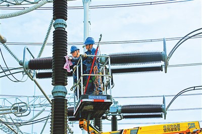 南方電網(wǎng)玉林供電局500千伏美林站美久甲線是廣西“四橫三縱”主網(wǎng)架的骨干輸電線路,是北部灣沿海城市間的重要電力通道,為廣西加快地區(qū)新型工業(yè)化進(jìn)程提供充足的電力支撐。圖為近日電力工人正在對(duì)美久甲線開展春季檢修工作,保障電力可靠傳輸。