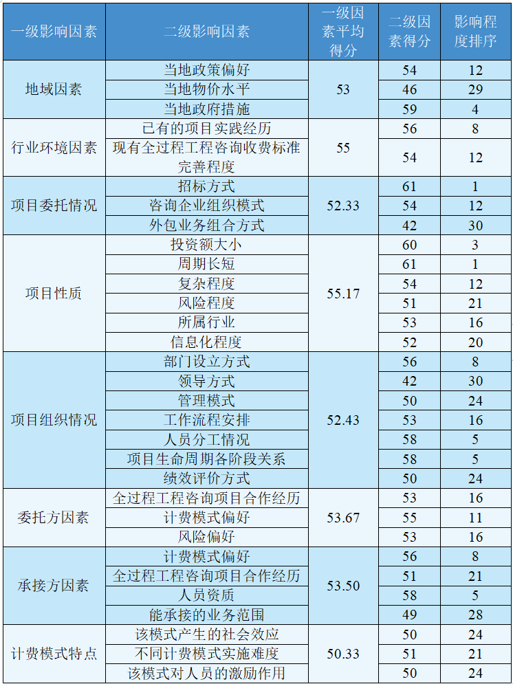 許相敏 顏俊 等 | 我國全過程工程咨詢服務(wù)酬金計取方式影響因素和模式選擇
