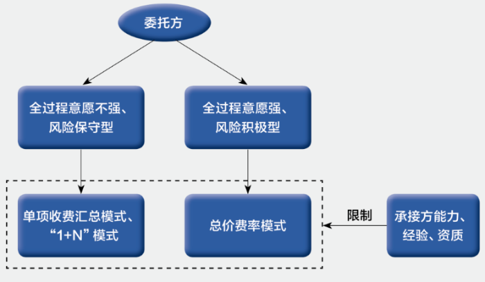 摘要:隨著我國基礎(chǔ)設(shè)施規(guī)模逐漸擴(kuò)大,對效率要求極高的規(guī)?;?、集群化、復(fù)雜化的建設(shè)工程大量出現(xiàn),傳統(tǒng)分階段咨詢模式已經(jīng)不能滿足這類項目的需求,全過程工程咨詢模式開始進(jìn)入人們的視野。我國全過程工程咨詢服務(wù)處于起步階段,缺乏完善的體系和標(biāo)準(zhǔn),尤其在酬金計取上缺乏參考依據(jù)。本文通過問卷調(diào)研、專家打分等形式對全過程工程咨詢酬金計取方式影響因素進(jìn)行研究,識別影響計費(fèi)方式的重要因素,為全過程工程咨詢服務(wù)實踐中計費(fèi)模式選取提供參考。 關(guān)鍵詞:全過程工程咨詢;計費(fèi)模式;影響因素 全過程工程咨詢服務(wù)是指由咨詢公司為業(yè)主提供涵蓋工程全業(yè)務(wù)、全生命周期、全方面的咨詢服務(wù)方案。全過程工程咨詢是從各專項咨詢業(yè)務(wù)基礎(chǔ)上發(fā)展而來,但并非各階段工程咨詢業(yè)務(wù)的簡單組合,是各環(huán)節(jié)有機(jī)整合,系統(tǒng)性思想貫穿其中,相較于傳統(tǒng)咨詢模式,具有節(jié)約投資成本、縮短項目工期、提高服務(wù)質(zhì)量等優(yōu)勢。 我國目前全過程工程咨詢發(fā)展仍處于起步階段,企業(yè)推行過程中面臨不少困境,其中一個問題就是收費(fèi)體系的不健全、不完善,計費(fèi)模式選擇缺乏參考依據(jù)。目前各企業(yè)主要采取單項收費(fèi)匯總、總價費(fèi)率、人工工時、“1+N”計費(fèi)四種收費(fèi)模式,而具體選擇哪一種模式并沒有相應(yīng)的標(biāo)準(zhǔn),計費(fèi)問題是咨詢項目從委托到落實過程中不可避免的重要問題,針對不同的項目,計費(fèi)模式的選擇不能一概而論,生搬硬套以往經(jīng)驗,最終模式的確定是政策環(huán)境、項目實際情況等多種因素綜合考量的結(jié)果。 計費(fèi)模式影響因素研究可以識別與計費(fèi)模式相關(guān)聯(lián)的重要因素,企業(yè)實踐中能更有針對性地對這些因素進(jìn)行綜合考量,為決策過程提供依據(jù),提高決策的科學(xué)性。本文以全過程工程咨詢計費(fèi)選擇影響因素為研究對象,通過文獻(xiàn)調(diào)研、政策分析等形式得到影響全過程工程咨詢計費(fèi)模式選擇的8個一級影響因素以及相應(yīng)的31個二級影響因素,并通過專家打分得到各個因素之間的重要性關(guān)系,最后從影響因素視角給出計費(fèi)模式選擇建議,為企業(yè)實踐提供依據(jù),豐富了全過程工程咨詢計費(fèi)理論研究,為相關(guān)政策制定提供一定參考。 一、我國全過程工程咨詢服務(wù)酬金計取方式影響因素識別 根據(jù)文獻(xiàn)梳理和相關(guān)政策分析,綜合考慮全過程工程咨詢項目內(nèi)外部環(huán)境,本文從外部環(huán)境、項目本身、利益相關(guān)者、計費(fèi)方式四個層面出發(fā),對全過程工程咨詢酬金計取方式產(chǎn)生影響的因素進(jìn)行了分析。 (一)外部環(huán)境層面 從外部環(huán)境層面來看,對于全過程工程咨詢項目,每個地方的政策以及當(dāng)?shù)卣闹С执胧┯兴煌赡軙绊懫髽I(yè)關(guān)于酬金計取方式的選擇傾向,同時進(jìn)行具體的費(fèi)用核算時必須考慮到市場行情和當(dāng)?shù)氐奈飪r水平,對于人工工時這類計費(fèi)模式更是依賴于各地方發(fā)展?fàn)顩r和物價水平。另一方面,從咨詢行業(yè)來看,目前全過程工程咨詢計費(fèi)模式選擇沒有統(tǒng)一的標(biāo)準(zhǔn),企業(yè)進(jìn)行選擇要參照行業(yè)現(xiàn)有的實踐情況,現(xiàn)有各類計費(fèi)標(biāo)準(zhǔn)的完善程度也是企業(yè)決策時的重要依據(jù)。 表1 外部環(huán)境層面可能影響因素 資料來源:作者根據(jù)公開資料整理 (二)項目本身層面 從項目本身層面來看,招標(biāo)方式、組織模式等項目委托情況可能會對計費(fèi)模式選擇造成影響,公開招標(biāo)、邀請招標(biāo)或者總體招標(biāo)、分階段招標(biāo)等招標(biāo)形式會對交易費(fèi)用產(chǎn)生影響,企業(yè)選擇一體化或聯(lián)合體等組織模式以及選擇哪些咨詢業(yè)務(wù)進(jìn)行外包都可能影響后續(xù)的計費(fèi)模式選擇。項目的組織情況例如部門設(shè)立的方式、領(lǐng)導(dǎo)方式等會影響整個項目的架構(gòu)和協(xié)調(diào)性,是按照職能還是時間進(jìn)行部門劃分,采用集權(quán)式或分權(quán)式管理,項目人員分工是否存在交叉,項目生命周期各階段業(yè)務(wù)之間是否有較高獨(dú)立性等情況都會影響到整個項目的集成或分散程度,計費(fèi)模式選擇要與項目各方面安排相配合。從項目本身性質(zhì)來看,不同項目所屬行業(yè)不同,項目周期以及整個工程面臨的復(fù)雜程度和風(fēng)險程度也不同,計費(fèi)模式選擇要能夠覆蓋項目的投入成本,反映出項目的性質(zhì)特點,一概而論必然會造成最終費(fèi)用偏高或偏低等不合理現(xiàn)象發(fā)生。 表2 項目層面可能影響因素 資料來源:作者根據(jù)公開資料整理 (三)利益相關(guān)者層面 從利益相關(guān)者角度,選擇科學(xué)合理的計費(fèi)模式最終是為了使項目各方的需求得以滿足,最大限度保障各方利益。項目委托方是主導(dǎo)者,也是咨詢業(yè)務(wù)的需求者,計費(fèi)模式要考慮到委托方的需求,參考其以往合作經(jīng)歷,考慮其選擇上的偏好。任何選擇都需要承擔(dān)一