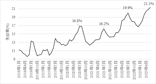 | 習近平總書記多次強調(diào),就業(yè)是最大的民生,青年就業(yè)工作要擺在更加突出位置。青年是國家的未來與希望,就業(yè)是青年群體最普遍、最迫切的需求之一。當前,我國16~24歲青年失業(yè)率連創(chuàng)新高,不利于經(jīng)濟社會穩(wěn)定發(fā)展。中咨公司課題組研究指出,當前青年失業(yè)率主要由經(jīng)濟增速和通脹水平回落以及供需錯配等因素造成,要充分認識到發(fā)展是解決青年失業(yè)問題的根本動力,做好職業(yè)教育和高等教育“兩頭抓”、不斷豐富就業(yè)信息來源和拓寬就業(yè)渠道、多途徑為失業(yè)青年提供保障,促進青年更好成長、更快發(fā)展。 一、青年失業(yè)率處于近年來高位 (一)當前青年失業(yè)率約為疫情前的兩倍,成為拖累整體失業(yè)率的主因。統(tǒng)計局數(shù)據(jù)顯示,疫情前我國青年失業(yè)率均值穩(wěn)定在10%左右,目前已經(jīng)超過20%。2020年青年失業(yè)率受疫情沖擊,月度峰值升至16.8%,2021年的月度峰值略微回落至16.2%,2022年全年的均值高達17.5%,為社會整體失業(yè)率的3.15倍,其中月度峰值達19.9%,創(chuàng)有記錄以來新高。今年4月,青年失業(yè)率首次突破20%,5月升至20.8%,6月份繼續(xù)攀升至21.3%,環(huán)比上升0.5個百分點,已經(jīng)連續(xù)3個月創(chuàng)記錄新高,超過當月社會整體失業(yè)率的4倍。 圖1 全國16~24歲人口城鎮(zhèn)調(diào)查失業(yè)率變動趨勢圖 (二)失業(yè)率高于全球平均水平及主要經(jīng)濟體。2022年全球青年失業(yè)率平均為14.9%,其中歐洲和中亞地區(qū)為16.4%,亞太地區(qū)為14.9%,北美地區(qū)為8.3%,美國的青年失業(yè)率在2020年4月達到27.4%的峰值,但2022年已經(jīng)穩(wěn)定控制在8.5%以下,全球主要地區(qū)的青年就業(yè)形勢好于我國。 (三)低學歷人群是失業(yè)青年的主力,面臨更大的失業(yè)風險。相較于高校畢業(yè)生,高中及以下的低學歷青年人數(shù)更多,成為影響當前青年失業(yè)率的重要因素。根據(jù)第七次人口普查數(shù)據(jù),當前我國16~24歲的人口數(shù)量剔除在校生后,高中及以下低學歷就業(yè)人數(shù)占比近70%。按照青年人口數(shù)和調(diào)查失業(yè)率推算,青年失業(yè)人口可能超過2400萬人,2022年高校畢業(yè)生剔除繼續(xù)升學人數(shù)后的求職人數(shù)約為950萬人,表明當前失業(yè)青年中低學歷人群的影響不容忽視。此外,2022年青年農(nóng)民工的數(shù)量為2800萬人,該人群的工作崗位不穩(wěn)定更易受經(jīng)濟波動影響,值得引起更多關(guān)注。 圖2 全國青年失業(yè)人數(shù)與高校畢業(yè)生人數(shù)對比圖 二、原因分析 (一)經(jīng)濟增速和通脹水平回落推高失業(yè)率。一方面,疫情以來經(jīng)濟增速回落推高失業(yè)率。奧肯定律揭示出宏觀經(jīng)濟增速和失業(yè)率呈反向關(guān)系,我國目前的經(jīng)濟增速仍未恢復至疫情前的水平,2023年2季度實際GDP環(huán)比增速出現(xiàn)回落,低于預期。同時,我國經(jīng)濟面臨增速換擋,自然會出現(xiàn)失業(yè)率的走高,直接表現(xiàn)為作為初入就業(yè)市場的青年群體就業(yè)難現(xiàn)象。另一方面,通脹水平持續(xù)下滑短期內(nèi)抑制就業(yè)。近期國內(nèi)的通脹水平持續(xù)走低,數(shù)據(jù)顯示,自2023年3月開始,我國CPI已經(jīng)連續(xù)4個月低于1%,6月份,CPI已經(jīng)降至0%,PPI同比下降5.4%,PPI同比降幅連續(xù)6個月不斷擴大。根據(jù)菲力普斯曲線,短期內(nèi)失業(yè)率與通貨膨脹率之間存在明顯的交替關(guān)系,因此,國內(nèi)的低通脹進一步推高了失業(yè)率。 圖3 短期內(nèi)失業(yè)率與通貨膨脹率之間的關(guān)系 (二)供需錯配進一步加劇失業(yè)風險。一是部分行業(yè)用人需求出現(xiàn)萎縮。根據(jù)普查數(shù)據(jù),有近50%的青年人就業(yè)主要集中在制造業(yè)、批發(fā)零售、住宿餐飲等行業(yè),但是近年來受疫情沖擊,居民消費需求恢復緩慢,住宿餐飲等服務行業(yè)收縮明顯,同時勞動密集型制造業(yè)與低端制造外遷,致使其吸納就業(yè)能力下降,對青年群體尤其是低學歷青年就業(yè)形成拖累。二是畢業(yè)生供給持續(xù)創(chuàng)新高。每年高校畢業(yè)生人數(shù)都在持續(xù)遞增,2023年高校畢業(yè)生已經(jīng)達到1158萬人,比本世紀初高出十倍之多,剔除考公、考研、出國的人數(shù),預估仍將有950萬應屆生進入職場,激烈程度每年只增不減。再加上近年外國留學人員回國求職人數(shù)上升,進一步增加了青年求職群體的就業(yè)壓力。三是結(jié)構(gòu)性矛盾突出。一方面,青年學生就業(yè)觀不實際。很多畢業(yè)生對就業(yè)環(huán)境、行業(yè)、城市的期望與實際勞動力市場提供的條件存有落差,青年不再愿意入職傳統(tǒng)的制造業(yè)工廠,甚至出現(xiàn)“3000元工廠招不到藍領(lǐng)工人,寫字樓卻可以招到大學生”的說法。并且近年來越來越多畢業(yè)生競爭有限的公職崗位,耽誤了最佳的就業(yè)時機。另一方面,知識和能力跟不上需求。在信息密集型服務業(yè)、知識密集型服務業(yè)等領(lǐng)域,眾多低學歷青年的知識儲備和能力無法滿足企業(yè)要求。此外,當前高校的教育與社會需求脫節(jié),導致人才培養(yǎng)滯后于產(chǎn)業(yè)結(jié)構(gòu)調(diào)整和市場需求變化。 三、失業(yè)率居高不下不利于社