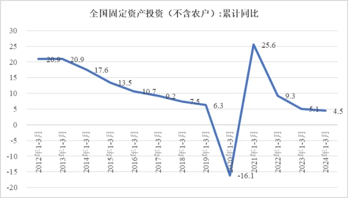 今年以來,我國經濟發(fā)展質效穩(wěn)步提升,投資結構不斷優(yōu)化,投資對發(fā)展的關鍵作用持續(xù)發(fā)揮。但受房地產投資低迷等因素影響,整體投資增速較上年同期有所放緩,民間投資活力仍待激發(fā)。下階段,需適時推進及用好中央預算內資金、萬億增發(fā)國債、地方政府專項債、超長期特別國債等政策工具,大規(guī)模推動制造業(yè)設備更新,持續(xù)激發(fā)民間投資活力,多措并舉消化存量房產,積極擴大有效益的投資,促進經濟平穩(wěn)健康發(fā)展。 一、一季度整體投資增速保持平穩(wěn) 2024年一季度,我國固定資產投資(不含農戶)同比增長4.5%,增速較上年同期下降0.6個百分點。建安工程、設備工器具購置分別增長4.6%、17.6%,設備工器具購置投資增速明顯高于建安工程投資增速,較2023年全年提高11個百分點,說明技術改造升級和設備更新市場潛力巨大,體現(xiàn)技術水平的設備工器具投入增長加快。 圖1 全國固定資產投資增速(%) 數(shù)據(jù)來源:國家統(tǒng)計局,Wind數(shù)據(jù)庫 (一)在資金支持和政策推動下,基礎設施投資支撐有力。今年2月底前,上年四季度增發(fā)的1萬億國債已全部下達,各地加快增發(fā)國債項目的開工建設,基礎設施投資穩(wěn)定增長。一季度基礎設施投資同比增長6.5%,較1—2月加快0.2個百分點,拉動全部投資增長1.4個百分點。其中,完成水利基礎設施投資1933億元,同比增長4.4%,為歷史同期最多;完成交通固定資產投資7205億元,同比增長13.3%;截至2月底全國能源重點項目完成投資約2680億元,同比增長17.2%。新型基礎設施建設穩(wěn)步發(fā)展,“雙千兆”網絡部署有序推進,累計建成5G基站364.7萬個,5G用戶普及率突破60%,千兆城市達到207個,梯次算力基礎設施架構加快構建。 表1 1—3月我國各行業(yè)固定資產投資情況 數(shù)據(jù)來源:國家統(tǒng)計局,Wind數(shù)據(jù)庫 (二)高技術產業(yè)投資繼續(xù)發(fā)揮引領帶動作用。一季度,制造業(yè)投資同比增長9.9%,拉動全部投資增長2.4個百分點。41個工業(yè)大類行業(yè)中,電子、汽車等37個行業(yè)增加值保持增長,增長面較去年擴大22個百分點。工業(yè)領域大規(guī)模設備更新和消費品以舊換新政策加快釋放市場空間,汽車銷量同比增長10.6%,家電類商品消費同比增長5.8%。3月,制造業(yè)采購經理指數(shù)(PMI)回升到景氣區(qū)間,達到了50.8%。 圖2 三大領域固定資產投資增速(累計同比,%) 數(shù)據(jù)來源:國家統(tǒng)計局,Wind數(shù)據(jù)庫 一季度高技術產業(yè)投資同比增長11.4%,其中高技術制造業(yè)和高技術服務業(yè)投資分別增長10.8%、12.7%。新興產業(yè)加快發(fā)展,3D打印設備、服務機器人產量分別增長40.6%、26.7%;創(chuàng)新成果不斷涌現(xiàn),300兆瓦級F級重型燃氣輪機首臺樣機總裝下線;人工智能與制造業(yè)深度融合,全國已建成近萬家數(shù)字化車間和智能工廠,已培育421家國家級智能制造示范工廠;生產性服務業(yè)發(fā)展提速,信息傳輸、軟件和信息技術服務業(yè)增加值增長13.7%。新興產業(yè)典型產品呈現(xiàn)較快增長勢頭,一季度太陽能電池增長20.1%,與光伏相關的多晶硅、單晶硅增速超過50%,新能源汽車產銷分別增長28.2%、31.8%。 圖3 高技術產業(yè)投資增速對比整體投資增速 (累計同比,%) 數(shù)據(jù)來源:國家統(tǒng)計局,Wind數(shù)據(jù)庫 (三)房地產投資仍然低迷,支持房地產穩(wěn)定發(fā)展政策效果逐漸顯現(xiàn)。一季度,全國房地產開發(fā)投資22082億元,同比下降9.5%。其中,住宅投資16585億元,下降10.5%。房地產開發(fā)投資占固定資產投資完成額的比重降至22.07%,較上年同期下降2.14個百分點。房屋施工面積、房屋新開工面積等先行指標均出現(xiàn)明顯下滑,分別同比下降11.1%、27.8%。3月,國房景氣指數(shù)為92.07,連續(xù)第四個月下降。一線城市二手住宅銷售價格環(huán)比下降0.7%,二、三線城市二手住宅銷售價格均環(huán)比下降0.5%,國內大中城市房價仍呈持續(xù)下降趨勢。 今年以來,各地加大了支持房地產穩(wěn)定發(fā)展的政策力度,包括降低貸款利率、放松限購、住房“以舊換新”等,一季度我國新建商品房銷售面積和銷售額比1—2月降幅分別收窄了1.1、1.7個百分點。去年中央金融工作會議后,中央及各地加大了保障性住房建設、“平急兩用”公共基礎設施建設、城中村改造等“三大工程”推進力度,積極構建房地產新發(fā)展模式。國家統(tǒng)計局數(shù)據(jù)顯示,“三大工程”拉動房地產投資0.6個百分點,政策舉措成效顯著。 (四)區(qū)域投資形勢整體向好,東北地區(qū)投資增速領先。2024年一季度,我國東北地區(qū)一批重大項目加快落地,投資大幅增長9.6%,較全國水平高了5.1個百分點;京津冀、長三角、粵港澳大灣區(qū)等動力源地區(qū)經濟較快增長,東部地區(qū)投資同比增長5.7%,較全國水平高了1.2個百分點;中西部地區(qū)產業(yè)加快轉型升級,投資分別增長4.1%、1.4%。 圖4 分地區(qū)固定資產投資增速(累計同比,%) 數(shù)據(jù)來源:國家統(tǒng)計局,Wind數(shù)據(jù)庫 2024年一季度,31個省份中有20個省投資增速高于全國水平,其中西藏、內蒙古、黑龍江、北京、新疆、甘肅等6省實現(xiàn)兩位數(shù)增長,江西、云南、廣西等3省投資出現(xiàn)負增長,分別同比下降1.1%、8.1%、20.4%。 表2 1—3月全國各省固