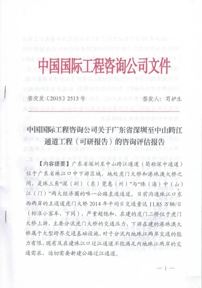 七年磨一劍,鏖戰(zhàn)珠江口。 飛架伶仃洋,天塹變通途。 6月30日,舉世矚目的國(guó)家重大工程深中通道正式建成通車。習(xí)近平總書記致信祝賀,并向參與規(guī)劃建設(shè)的全體同志致以誠(chéng)摯問候。賀信中寫道:“深中通道是繼港珠澳大橋后粵港澳大灣區(qū)建成的又一超大型交通工程,攻克了多項(xiàng)世界級(jí)技術(shù)難題,創(chuàng)造了多項(xiàng)世界紀(jì)錄。全體參與者用辛勤付出、堅(jiān)強(qiáng)毅力,高質(zhì)量完成了工程任務(wù)。這充分說明,中國(guó)式現(xiàn)代化是干出來的,偉大事業(yè)都成于實(shí)干!” 全長(zhǎng)約24公里,總投資446億元的深中通道在環(huán)珠江口“A”字形交通主骨架上挺起關(guān)鍵一“橫”,成為全球首個(gè)集“橋、島、隧、水下互通”為一體的跨海集群工程。通車后,深圳至中山的車程從2小時(shí)左右縮短至30分鐘。自此,深中兩地“雙向奔赴”,攜手進(jìn)入“一小時(shí)經(jīng)濟(jì)圈”,廣佛肇、深莞惠、珠中江三大珠三角都市圈聯(lián)結(jié)更加密切,推動(dòng)了粵港澳大灣區(qū)高質(zhì)量發(fā)展加速駛?cè)肟燔嚨馈?/span> 世界最大跨徑(1666米)全離岸海中鋼箱梁懸索橋、世界最高通航凈空高度(76.5米)、世界最大海中錨碇(100萬噸)、世界橋梁最高顫振臨界風(fēng)速(88米/秒)……深中通道創(chuàng)造了十多項(xiàng)世界紀(jì)錄,形成了“鋼殼-混凝土沉管隧道設(shè)計(jì)方法”等10項(xiàng)世界領(lǐng)先技術(shù)。獲得發(fā)明專利200余項(xiàng)、行業(yè)協(xié)會(huì)獎(jiǎng)項(xiàng)數(shù)十項(xiàng),并屢獲國(guó)際贊譽(yù):2024年4月,深中大橋榮獲國(guó)際橋梁大會(huì)“喬治·理查德森獎(jiǎng)”,深中隧道入選“全球隧道與地下工程領(lǐng)域50項(xiàng)標(biāo)志性工程”。 這樣一項(xiàng)屢創(chuàng)紀(jì)錄、成于實(shí)干的超級(jí)工程背后,凝結(jié)著上百家參建單位、上萬名建設(shè)者的汗水和智慧,中國(guó)國(guó)際工程咨詢有限公司(以下簡(jiǎn)稱“中咨公司”)便是其中一員。作為國(guó)家高端智庫和國(guó)內(nèi)規(guī)模最大的綜合性工程咨詢機(jī)構(gòu),中咨公司牢記“服務(wù)國(guó)家 貢獻(xiàn)社會(huì)”的初心使命,始終胸懷“國(guó)之大者”,助建“國(guó)之重器”,全程參與深中通道的建設(shè)論證,中咨人攻堅(jiān)克難,勇于擔(dān)當(dāng),敢于創(chuàng)新,用實(shí)際行動(dòng)詮釋了“公正、科學(xué)、可靠、敢言、多謀、慎斷”的中咨精神,為工程保駕護(hù)航,作出了重要貢獻(xiàn)。 使命召喚,責(zé)無旁貸 深中通道建設(shè)勢(shì)在必行 十年彈指一揮間,不負(fù)韶華不負(fù)己。2014年12月,受國(guó)家發(fā)展改革委委托,中咨公司開展《深圳至中山跨江通道可行性研究報(bào)告》(以下簡(jiǎn)稱《可研報(bào)告》)的咨詢?cè)u(píng)估工作,評(píng)估重點(diǎn)包含以下方面:交通流量流向分析;項(xiàng)目建設(shè)時(shí)機(jī);與港珠澳大橋項(xiàng)目關(guān)系問題;公鐵兩用可行性分析,合理利用通道資源;起訖點(diǎn)方案和路線方案;橋梁隧道方案同深度比選;合理確定車道數(shù)和橋梁(隧道)寬度等技術(shù)指標(biāo);投資估算和貸款償還能力分析;對(duì)社會(huì)穩(wěn)定風(fēng)險(xiǎn)分析和評(píng)估報(bào)告提出咨詢意見。 使命召喚,責(zé)無旁貸。中咨公司高度重視深中通道評(píng)估工作,迅速成立組建專班,由時(shí)任中咨公司副總經(jīng)理茍護(hù)生,原交通業(yè)務(wù)部主任佘湘耘,時(shí)任交通業(yè)務(wù)部主任助理姜青春,公路處處長(zhǎng)(項(xiàng)目經(jīng)理)宋小云、公路處申培華、徐進(jìn)、王春苗等,并邀請(qǐng)涵蓋隧道、橋梁、水運(yùn)、鐵路、公路、投資估算等方面專家,共同組成項(xiàng)目組,全力以赴做好評(píng)估論證工作。 2014年12月,中咨公司接受委托開展評(píng)估論證工作。 2015年1月,中咨公司組織由工程院士、設(shè)計(jì)等組成的評(píng)估組,在深圳召開現(xiàn)場(chǎng)咨詢?cè)u(píng)估會(huì),評(píng)估認(rèn)為本項(xiàng)目的通航安全影響行業(yè)主管部門尚未批復(fù),現(xiàn)有建設(shè)方案存在很大的不確定性,建議待有關(guān)通航等問題明確后,確定工程方案。 2015年8月,交通運(yùn)輸部出具《關(guān)于深圳至中山跨江通道項(xiàng)目航道條件與通航安全影響評(píng)價(jià)的審核意見》(交水函〔2015〕590號(hào)),明確各航道通航凈空和相關(guān)技術(shù)要求。 2015年10月,《可研報(bào)告》編制單位根據(jù)中咨公司咨詢?cè)u(píng)估會(huì)意見和交通運(yùn)輸部關(guān)于通航影響的批復(fù)意見,對(duì)交通量預(yù)測(cè)、通航審批執(zhí)行情況、工程實(shí)施范圍、投資估算及經(jīng)濟(jì)評(píng)價(jià)等內(nèi)容進(jìn)行了進(jìn)一步修改完善。 2015年11月,經(jīng)過評(píng)估組研究并進(jìn)行再次評(píng)估后,中咨公司關(guān)于廣東省深圳至中山跨江通道工程(可研報(bào)告)的咨詢?cè)u(píng)估報(bào)告正式提交國(guó)家發(fā)展改革委。 至此,歷時(shí)近一年的深中通道咨詢?cè)u(píng)估工作順利完成,評(píng)估組從建設(shè)必要性與建設(shè)時(shí)機(jī)、交通量預(yù)測(cè)、與港珠澳大橋的關(guān)系、技術(shù)標(biāo)準(zhǔn)及通航標(biāo)準(zhǔn)、建設(sh