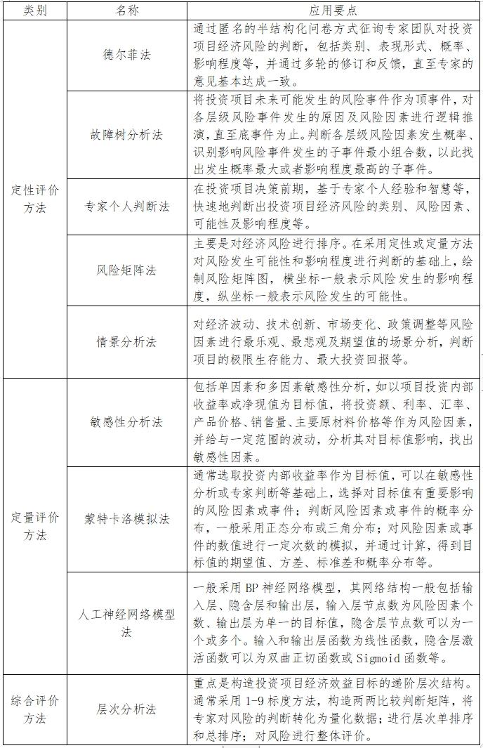 新形勢(shì)下投資項(xiàng)目經(jīng)濟(jì)風(fēng)險(xiǎn)管控思路研究 劉義成 摘要:投資項(xiàng)目經(jīng)濟(jì)環(huán)境不確定性主要體現(xiàn)在經(jīng)濟(jì)波動(dòng)、市場(chǎng)變化、技術(shù)創(chuàng)新及政策調(diào)整等方面,對(duì)其分析評(píng)價(jià)需要把握好全面性、系統(tǒng)性、動(dòng)態(tài)性及定性與定量相結(jié)合原則,并選擇適合的定性、定量和綜合評(píng)價(jià)方法。隨著投資項(xiàng)目國(guó)際國(guó)內(nèi)環(huán)境的變化,為增強(qiáng)投資項(xiàng)目應(yīng)對(duì)經(jīng)濟(jì)風(fēng)險(xiǎn)的風(fēng)險(xiǎn)回避、風(fēng)險(xiǎn)減輕、風(fēng)險(xiǎn)轉(zhuǎn)移和風(fēng)險(xiǎn)接受等策略實(shí)施的有效性,應(yīng)強(qiáng)調(diào)經(jīng)濟(jì)分析的基礎(chǔ)性地位,加強(qiáng)內(nèi)外部資源整合,推動(dòng)風(fēng)險(xiǎn)管理的方法和工具創(chuàng)新,完善投資項(xiàng)目經(jīng)濟(jì)風(fēng)險(xiǎn)管控措施。 關(guān)鍵詞:投資項(xiàng)目;經(jīng)濟(jì)風(fēng)險(xiǎn);分析評(píng)價(jià);管控策略 風(fēng)險(xiǎn)可控性是投資項(xiàng)目可行性研究的核心目標(biāo)之一,主要強(qiáng)調(diào)對(duì)項(xiàng)目全生命周期包括建設(shè)、運(yùn)營(yíng)、融資等專項(xiàng)風(fēng)險(xiǎn)的識(shí)別,對(duì)風(fēng)險(xiǎn)發(fā)生可能性及影響程度的評(píng)估,以及對(duì)主要風(fēng)險(xiǎn)管控方案和重大風(fēng)險(xiǎn)應(yīng)急預(yù)案的制定。從投資項(xiàng)目面臨的內(nèi)外部風(fēng)險(xiǎn)因素看,外部因素包括政治、經(jīng)濟(jì)、社會(huì)、自然等方面,內(nèi)部因素包括資金、設(shè)計(jì)、人員、管理、制度等方面。在全球經(jīng)濟(jì)一體化深入發(fā)展、我國(guó)社會(huì)主義市場(chǎng)經(jīng)濟(jì)體制不斷完善及現(xiàn)代化企業(yè)制度逐步建立的背景下,未來(lái)投資項(xiàng)目全生命周期風(fēng)險(xiǎn)管控需要重點(diǎn)加強(qiáng)經(jīng)濟(jì)風(fēng)險(xiǎn)的分析評(píng)價(jià)和應(yīng)對(duì)工作。 一、投資項(xiàng)目經(jīng)濟(jì)風(fēng)險(xiǎn)的內(nèi)涵及特征 (一)投資項(xiàng)目經(jīng)濟(jì)風(fēng)險(xiǎn)的內(nèi)涵及主要類別 1.經(jīng)濟(jì)風(fēng)險(xiǎn)內(nèi)涵 國(guó)際標(biāo)準(zhǔn)化組織(ISO)發(fā)布的ISO31000:2018《風(fēng)險(xiǎn)管理指南》中對(duì)風(fēng)險(xiǎn)的定義是“不確定性對(duì)目標(biāo)的影響”,并進(jìn)一步說明這種影響是與預(yù)期的偏差,包括積極的、消極的或兼而有之。對(duì)于投資項(xiàng)目而言,經(jīng)濟(jì)風(fēng)險(xiǎn)是指經(jīng)濟(jì)環(huán)境的不確定性對(duì)投資項(xiàng)目經(jīng)濟(jì)效益、可持續(xù)發(fā)展等目標(biāo)的影響,主要強(qiáng)調(diào)的是風(fēng)險(xiǎn)源或風(fēng)險(xiǎn)因素,結(jié)合風(fēng)險(xiǎn)事件、可能性及后果等要素共同構(gòu)成完整的風(fēng)險(xiǎn)表示。在國(guó)際國(guó)內(nèi)發(fā)展環(huán)境復(fù)雜多變的新形勢(shì)下,投資項(xiàng)目經(jīng)濟(jì)風(fēng)險(xiǎn)內(nèi)涵的深刻變化體現(xiàn)在:一是不確定性方面,主要是難以預(yù)測(cè)或不可預(yù)測(cè)的風(fēng)險(xiǎn)事件頻發(fā);二是投資項(xiàng)目的預(yù)期目標(biāo)方面,相較于傳統(tǒng)的對(duì)目標(biāo)的不確定性影響分析,更需要強(qiáng)化不確定性分析對(duì)形成合理有效投資目標(biāo)的支撐作用;三是影響方面,既要分析損失影響,也要分析可能帶來(lái)的收益影響。 2.主要類別 投資項(xiàng)目所處外部經(jīng)濟(jì)環(huán)境的不確定性,主要體現(xiàn)在經(jīng)濟(jì)波動(dòng)、市場(chǎng)變化、技術(shù)創(chuàng)新及政策調(diào)整等方面,具體如下: 經(jīng)濟(jì)波動(dòng)。在當(dāng)前大國(guó)博弈加劇、地緣政治沖突、經(jīng)濟(jì)制裁頻發(fā)的大環(huán)境下,全球經(jīng)濟(jì)發(fā)展面臨著諸多潛在風(fēng)險(xiǎn),造成投資項(xiàng)目的目標(biāo)確立和風(fēng)險(xiǎn)管理愈發(fā)困難。宏觀經(jīng)濟(jì)的波動(dòng)會(huì)造成投資和消費(fèi)的預(yù)期及通貨膨脹率、利率、匯率等產(chǎn)生變化,從而對(duì)投資項(xiàng)目的規(guī)模、進(jìn)度、成本、收益等產(chǎn)生直接或間接影響,如在經(jīng)濟(jì)高速增長(zhǎng)期,市場(chǎng)需求旺盛,容易產(chǎn)生較高的投資回報(bào)預(yù)期,而在經(jīng)濟(jì)下行或進(jìn)入蕭條期,市場(chǎng)需求低迷,營(yíng)收不及預(yù)期,容易導(dǎo)致資金鏈斷裂,影響項(xiàng)目持續(xù)運(yùn)行。 市場(chǎng)變化。投資項(xiàng)目面臨的市場(chǎng)變化風(fēng)險(xiǎn)主要是投入物和產(chǎn)出物的價(jià)格和量的波動(dòng),在當(dāng)前形勢(shì)下,需要重點(diǎn)關(guān)注原材料或其他重要投入物的價(jià)格上漲風(fēng)險(xiǎn)、產(chǎn)業(yè)鏈供應(yīng)鏈穩(wěn)定風(fēng)險(xiǎn)、產(chǎn)品價(jià)格下行及需求不足風(fēng)險(xiǎn)等。 技術(shù)創(chuàng)新。隨著全球創(chuàng)新步伐加快,新材料、新工藝、新技術(shù)等不斷涌現(xiàn),使得投資項(xiàng)目面臨的技術(shù)環(huán)境不確定因素增多,主要表現(xiàn)在技術(shù)更新?lián)Q代快、技術(shù)轉(zhuǎn)化難度高等方面。投資項(xiàng)目需要不斷加強(qiáng)創(ch